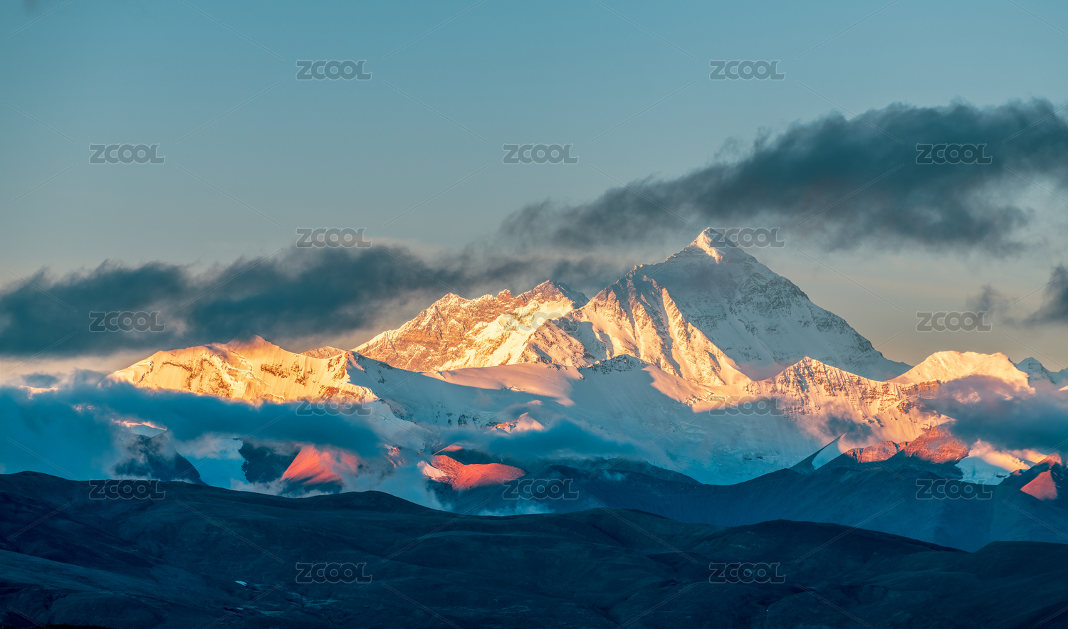 中国西藏喜马拉雅山脉珠穆朗玛峰日照金山