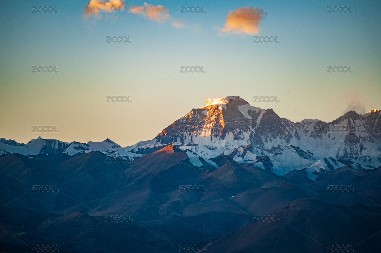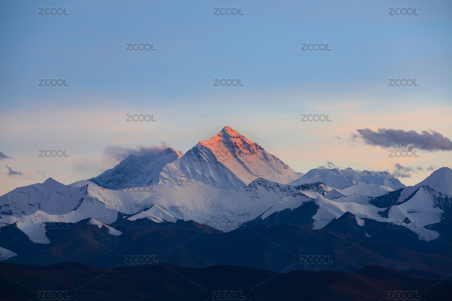 中国西藏喜马拉雅山脉珠穆朗玛峰日照金山