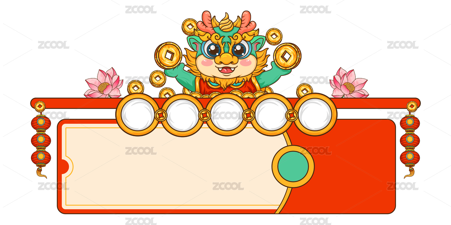 过新年喜庆龙年红色灯笼横幅金币荷花标题栏