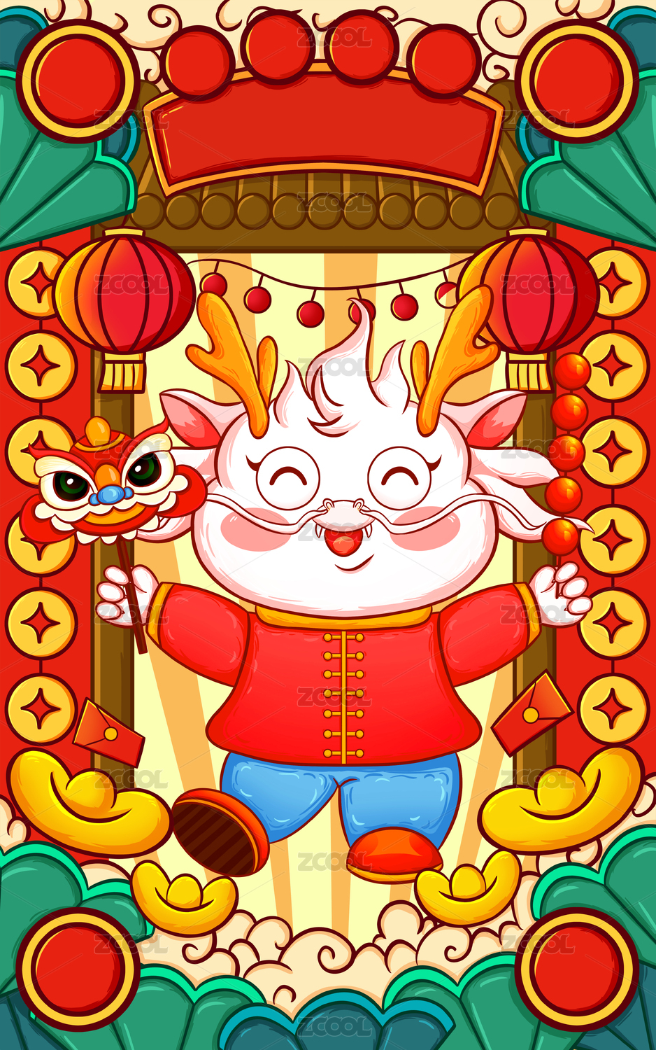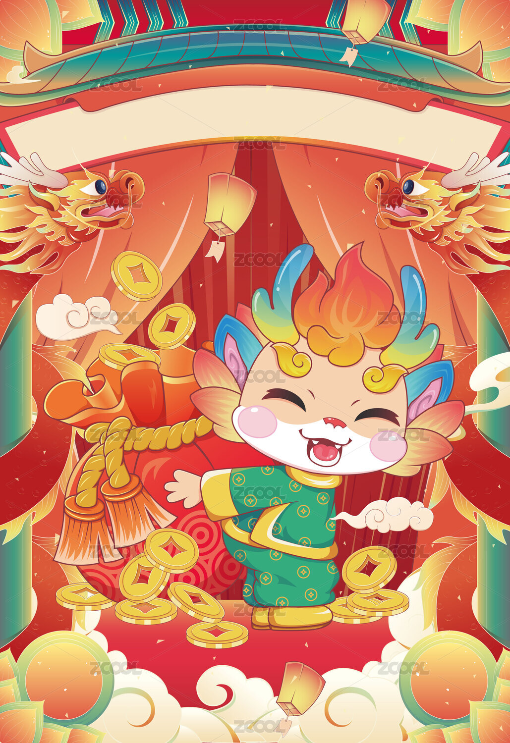 龙年吉祥生肖矢量国风拜年祝福红包插画设计