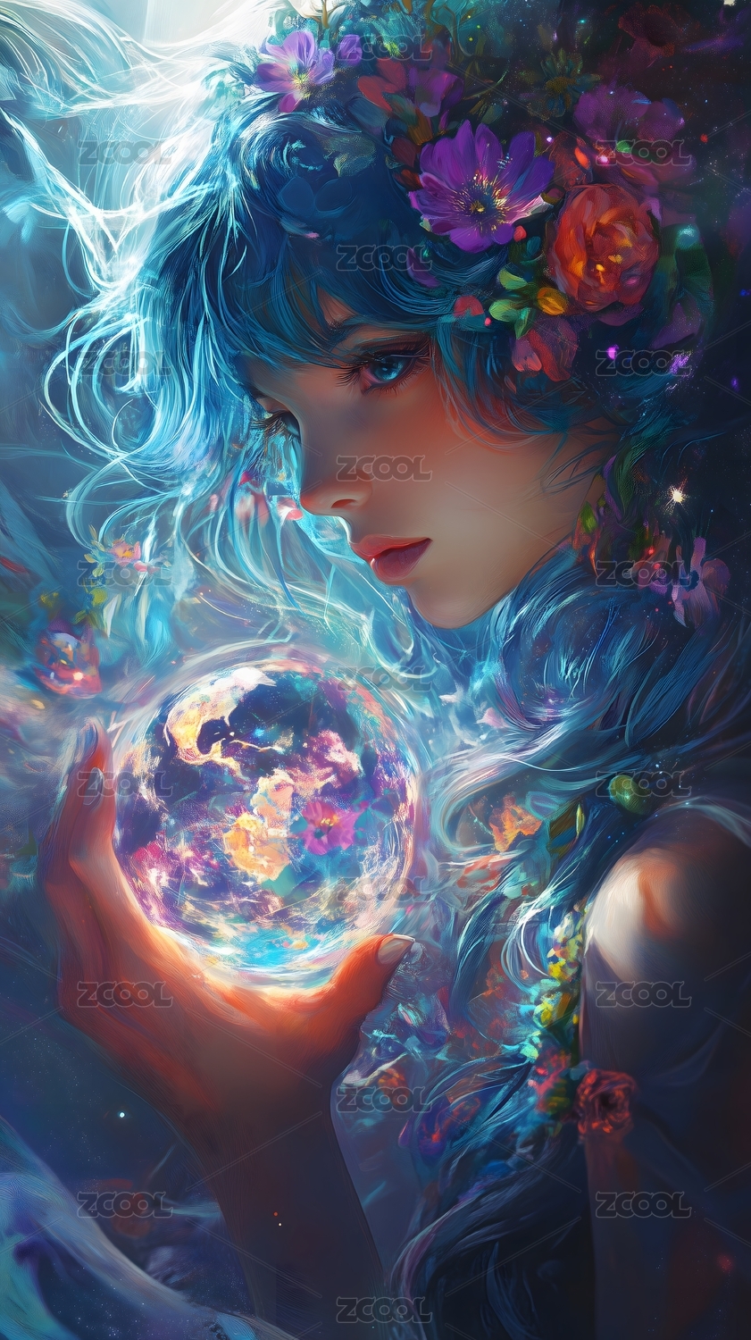 月夜,月光,古老,花朵,鲜花,藤蔓,月亮,插画,唯美,女孩