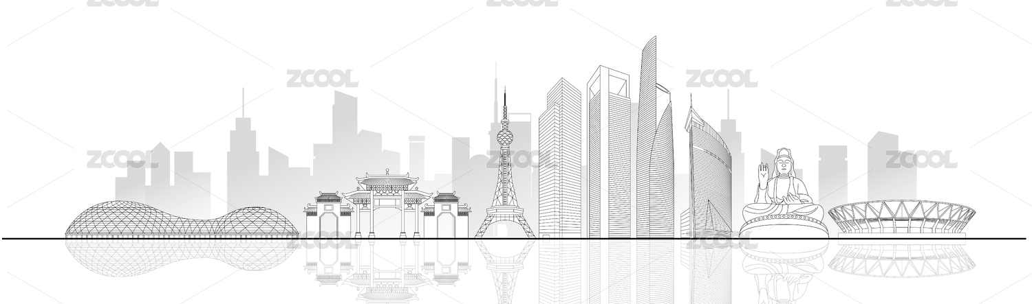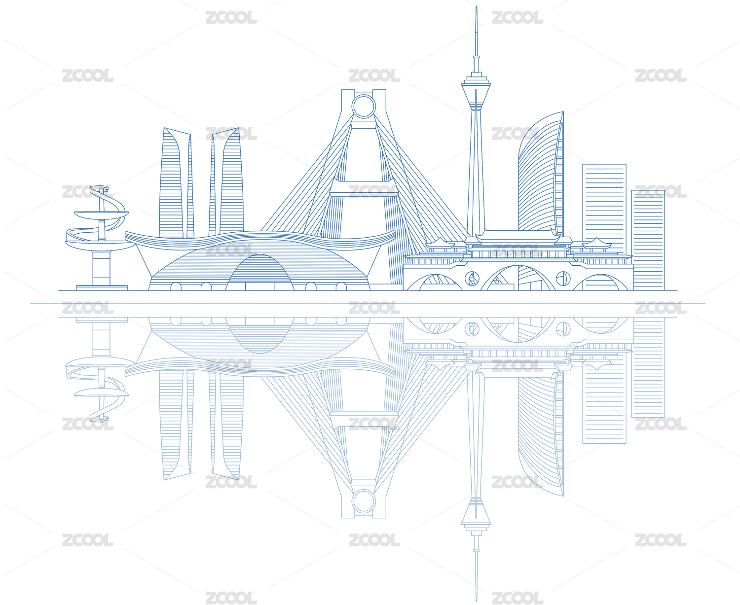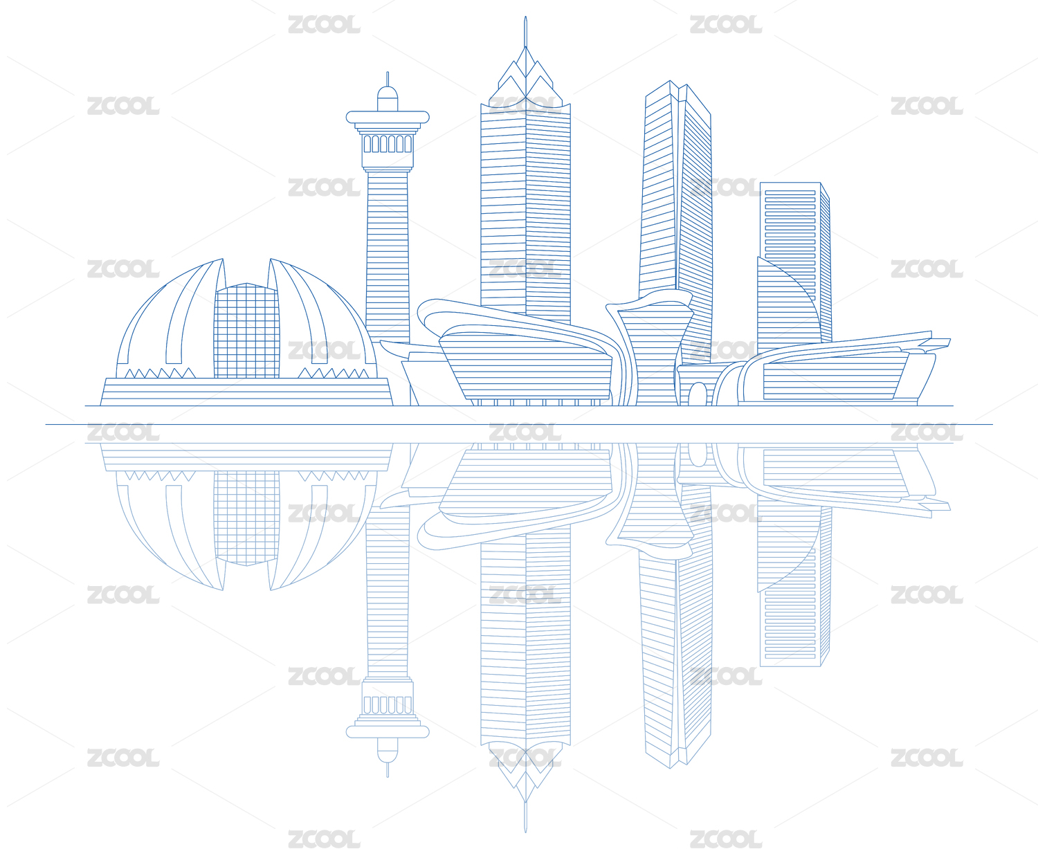 城市,线条,标志,建筑,描边风格,插画,轮廓,等角投影,简约,著名景点
