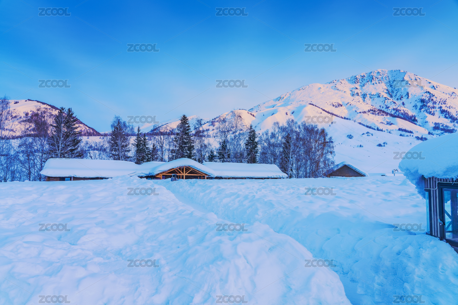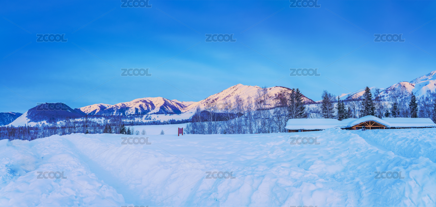 中国北疆禾木雪山自然风光