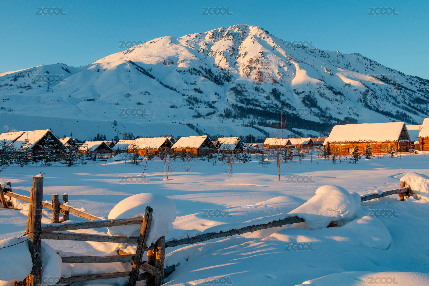 中国新疆阿勒泰地区禾木村雪景