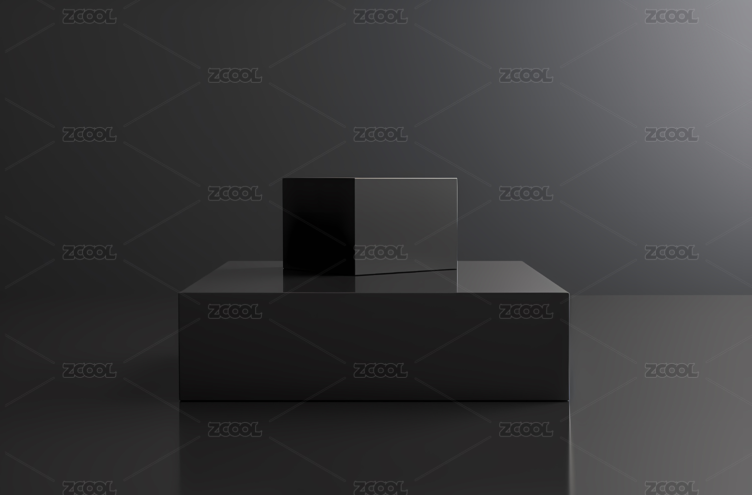 黑暗房间内的金属方块展台,三维渲染