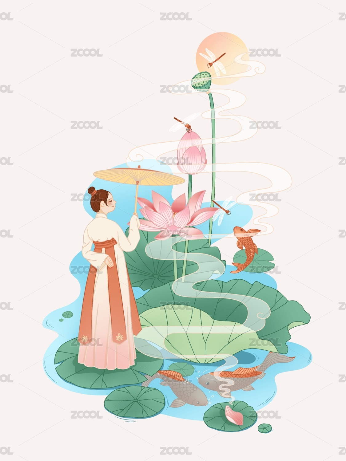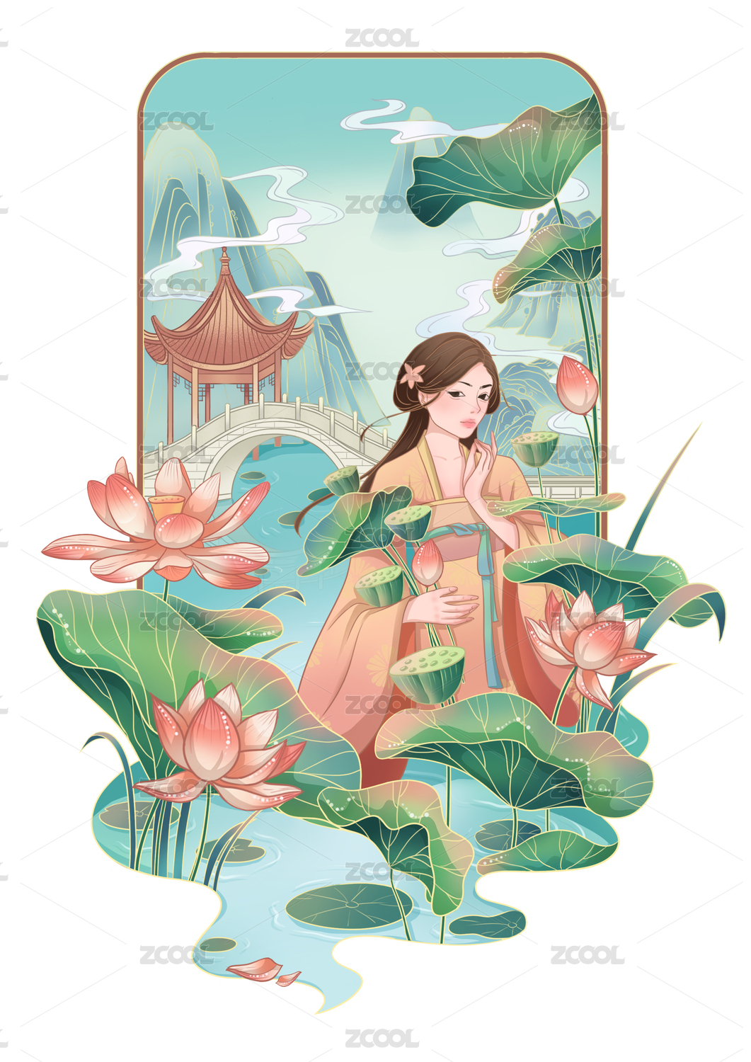 中式荷花唯美插画