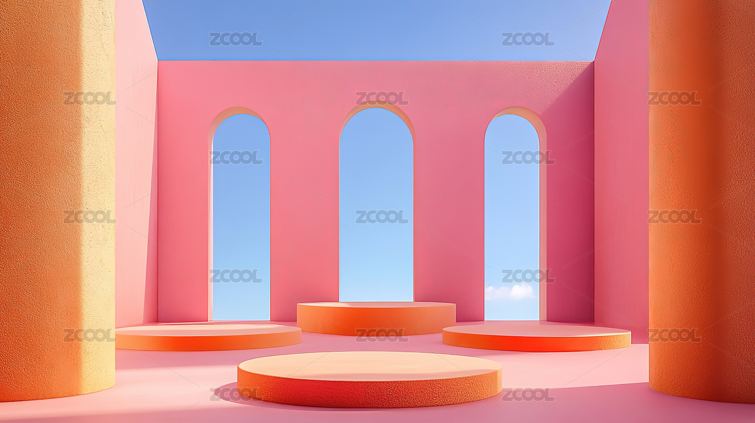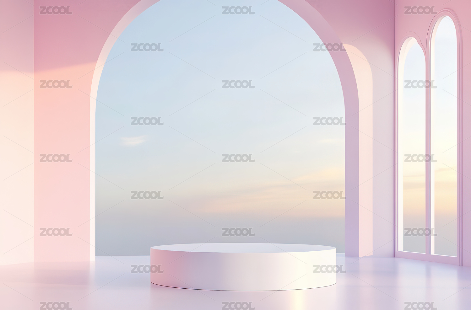 粉色极简主义建筑与圆形窗口