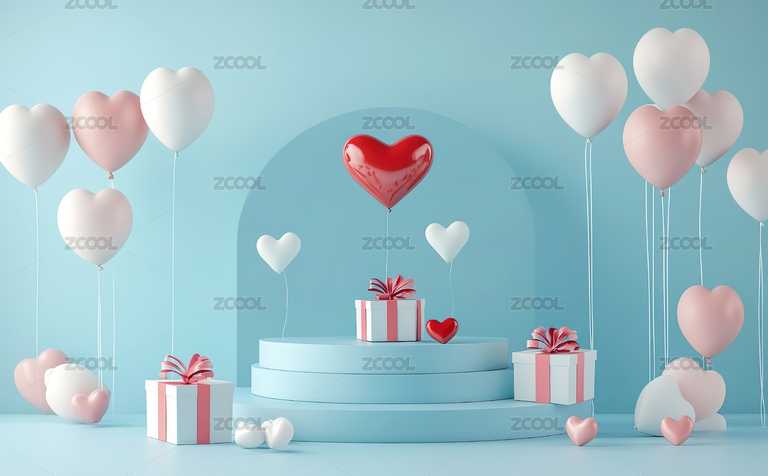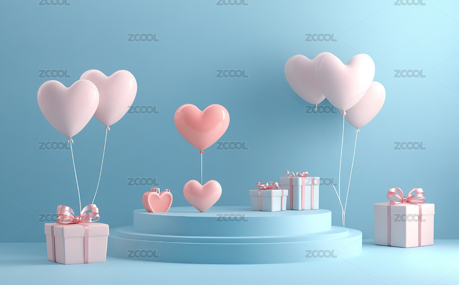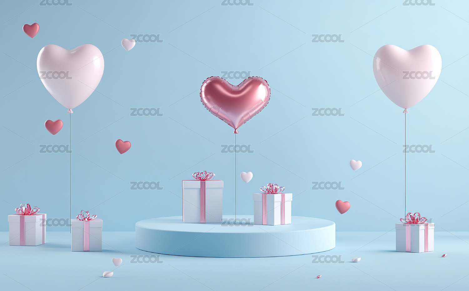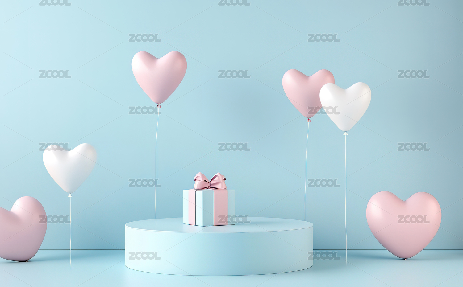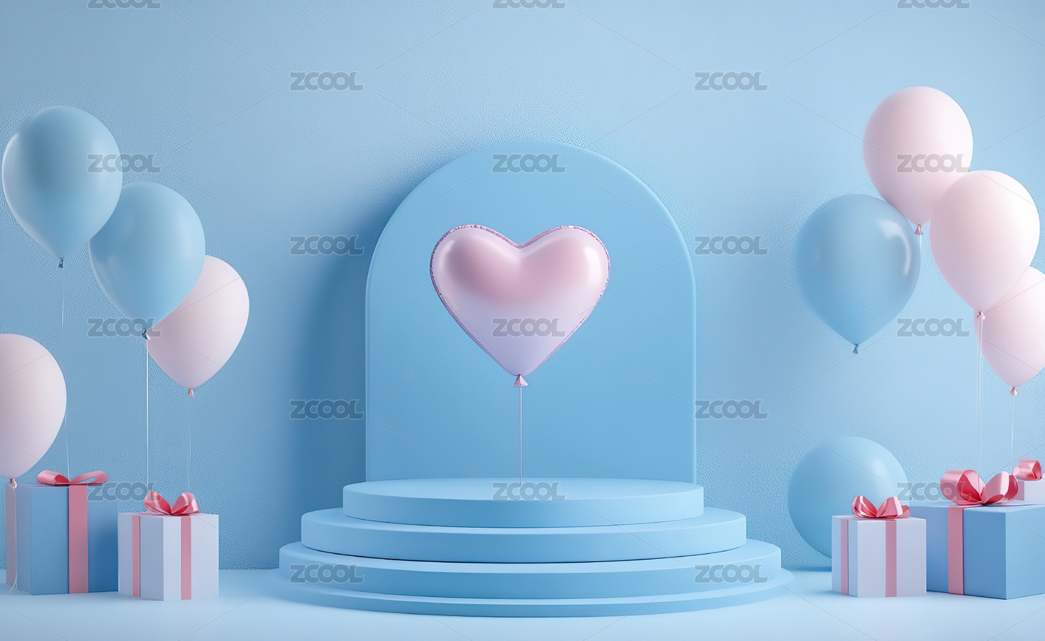 粉蓝心形气球与礼品盒
