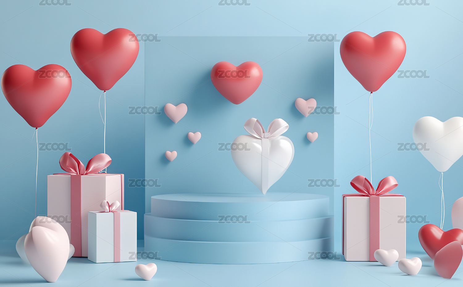 情人节礼物盒与心形气球