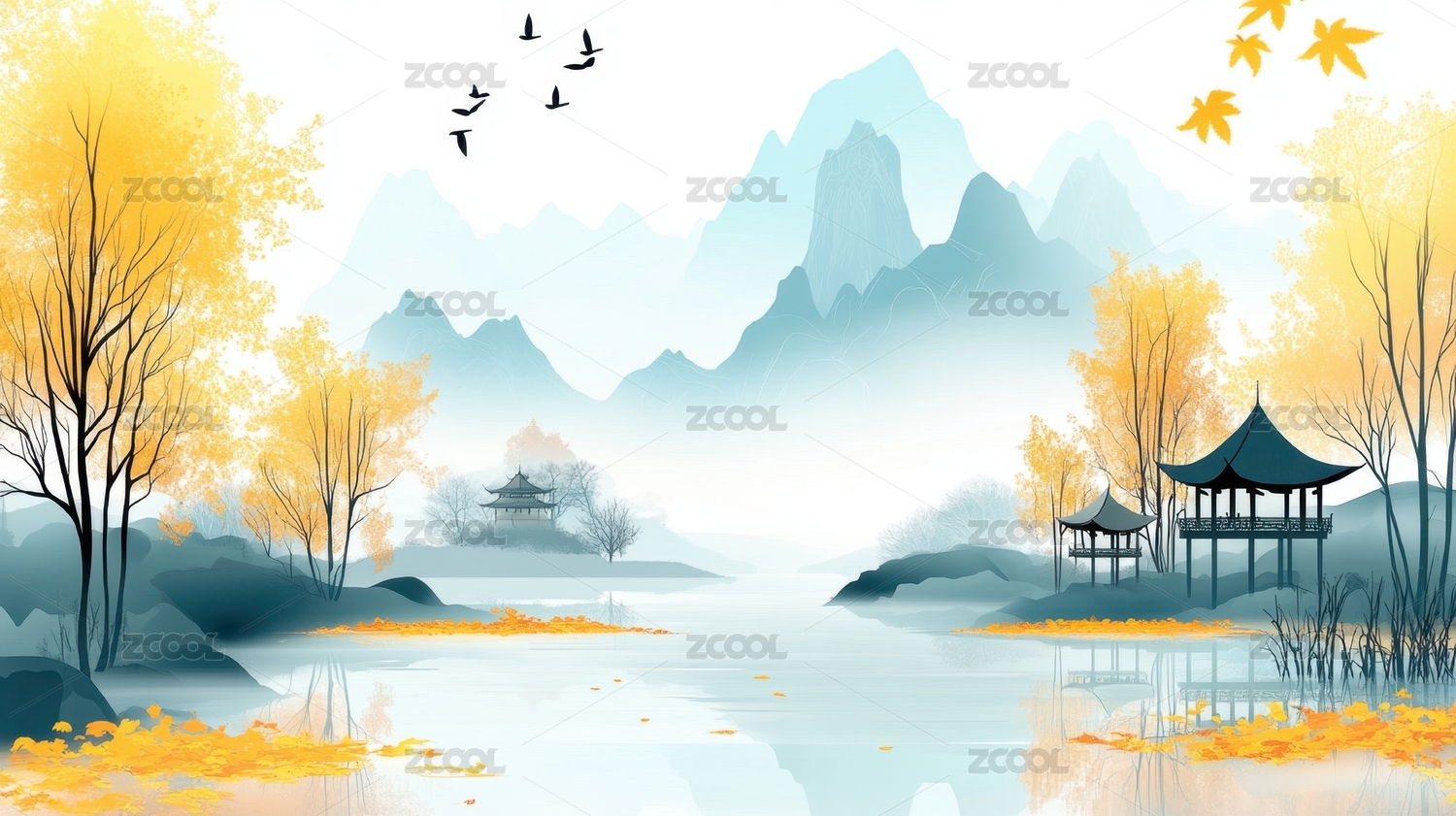 中国风山水画秋景
