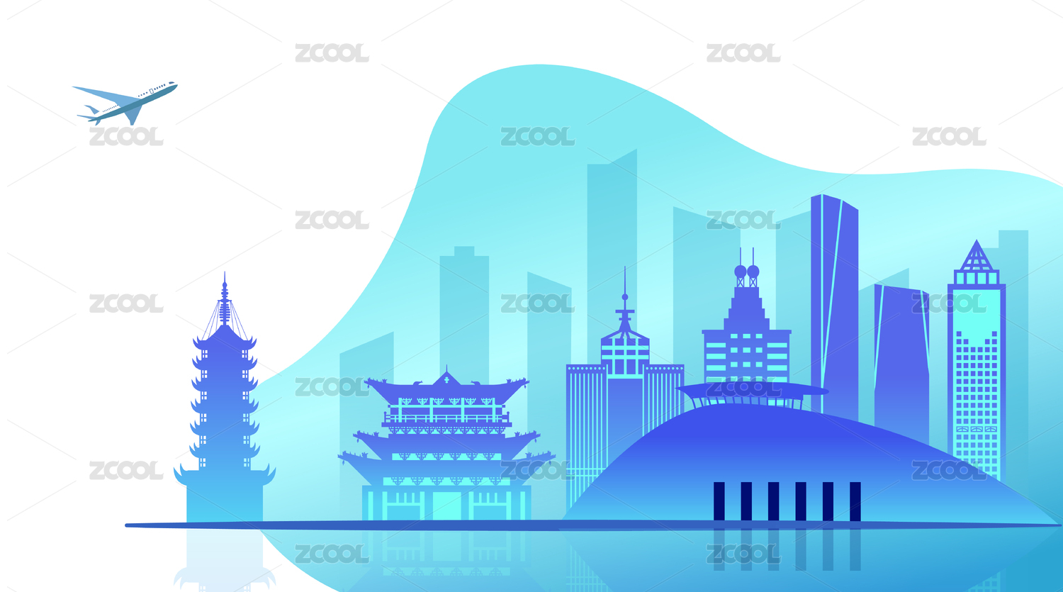 中国浙江省嘉兴市城市矢量插画网页版蓝色