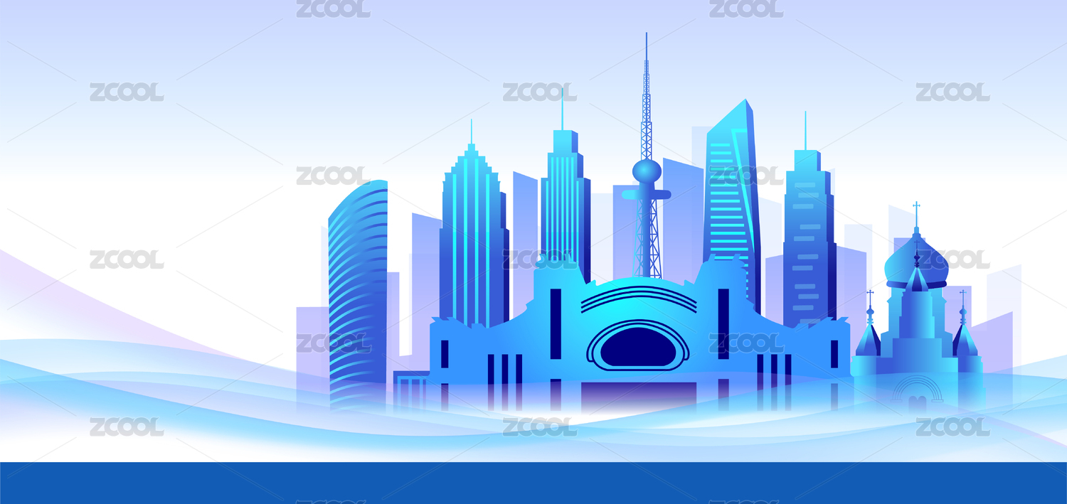 中国黑龙江哈尔滨市商务科技城市彩色插画