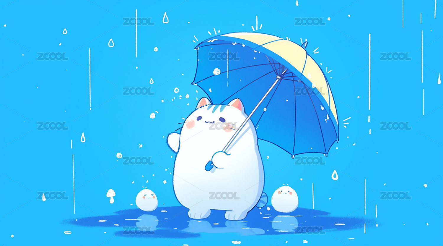 兔子,梦幻,清新,唯美,治愈,雨伞,雨天,可爱,浪漫,宁静