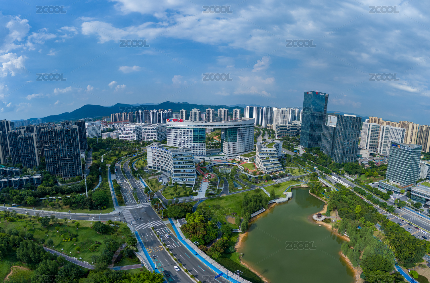中新广州知识城和凤凰湖城市天际线航拍全景