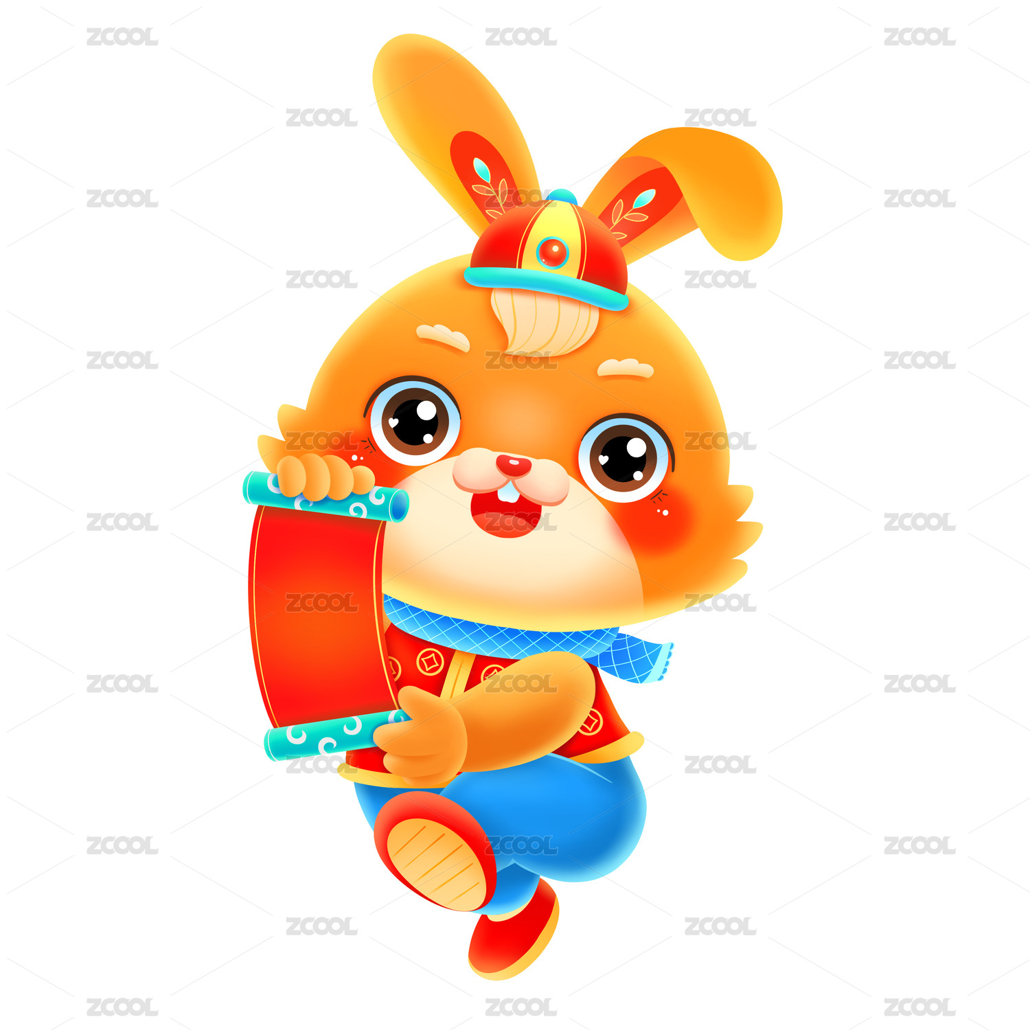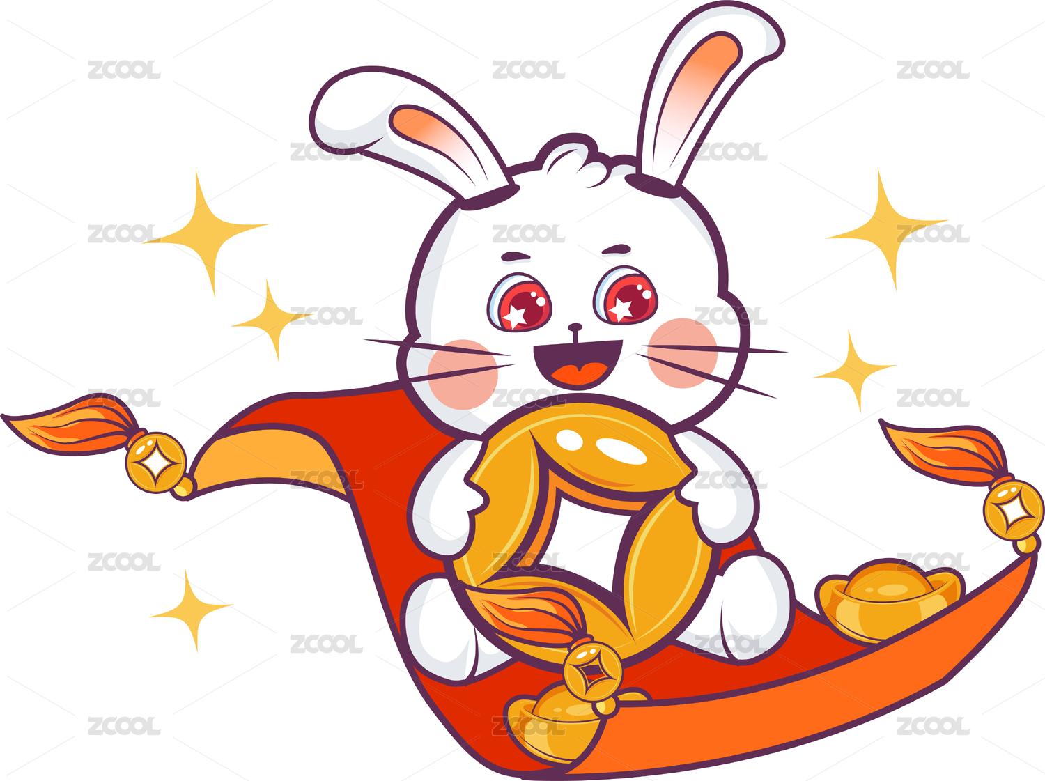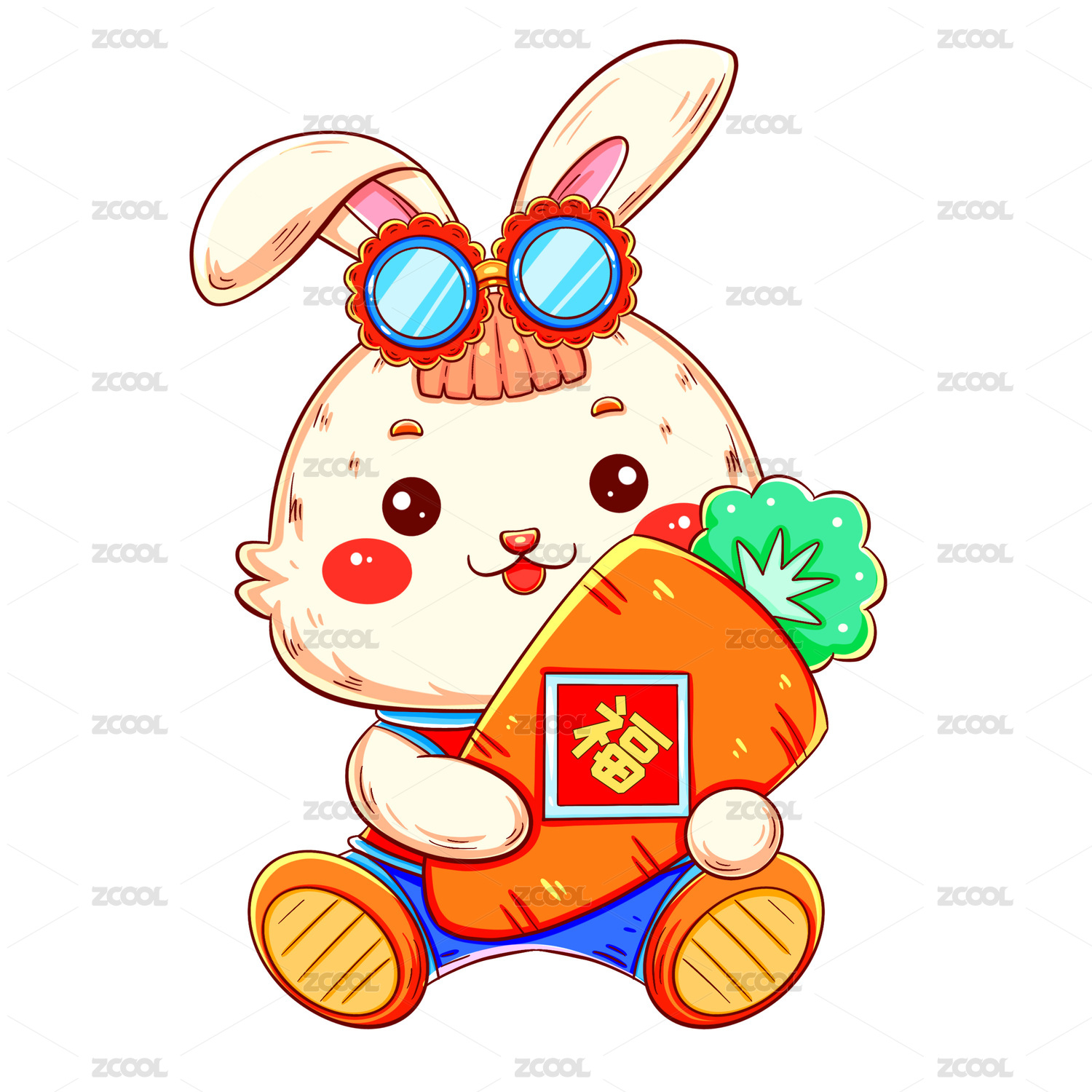 新年兔年春节可爱卡通抱胡萝卜兔元素