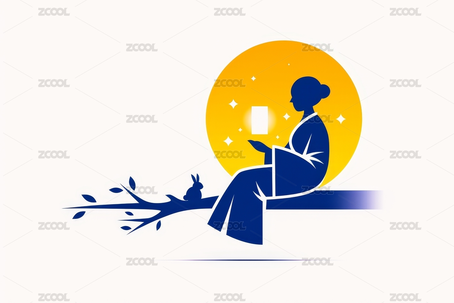 中国传统节日中秋节嫦娥奔月手绘插画素材