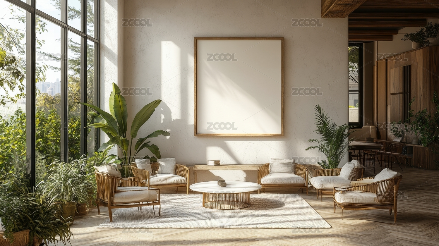 AI数字艺术,三维图形,现代,室内,住宅房间,家具,桌子,设计,椅子,客厅