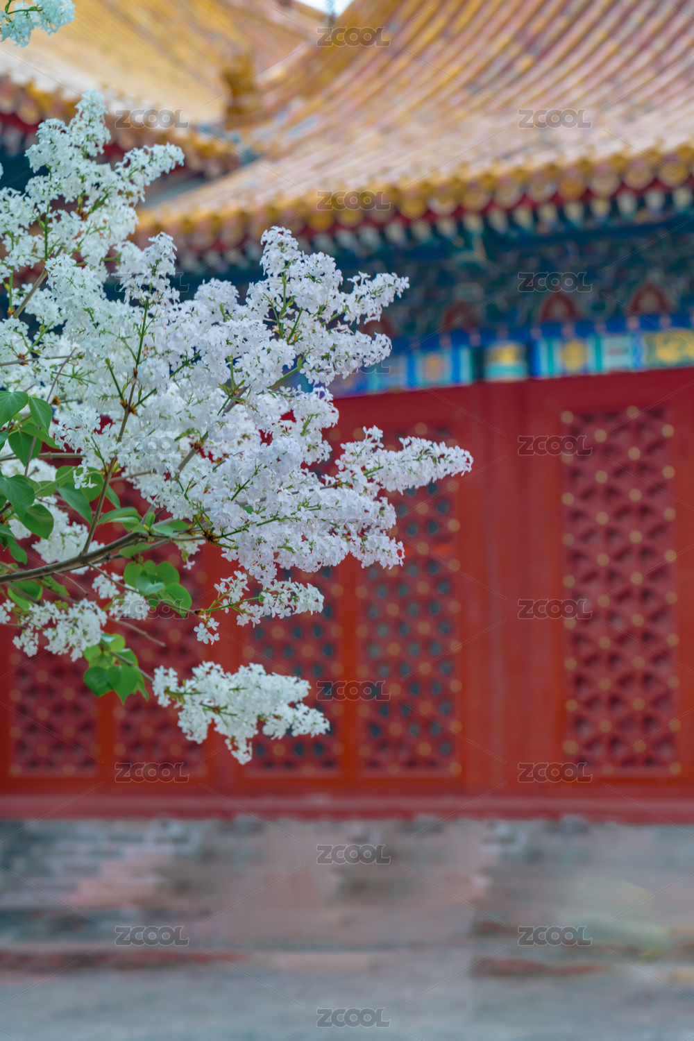 春天北京故宫博物院承乾宫里盛开的白色梨花