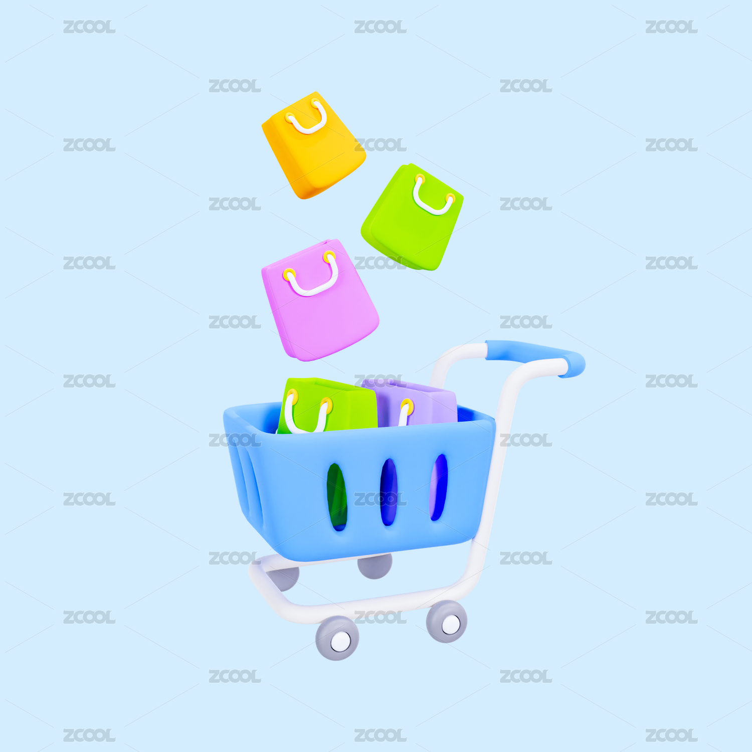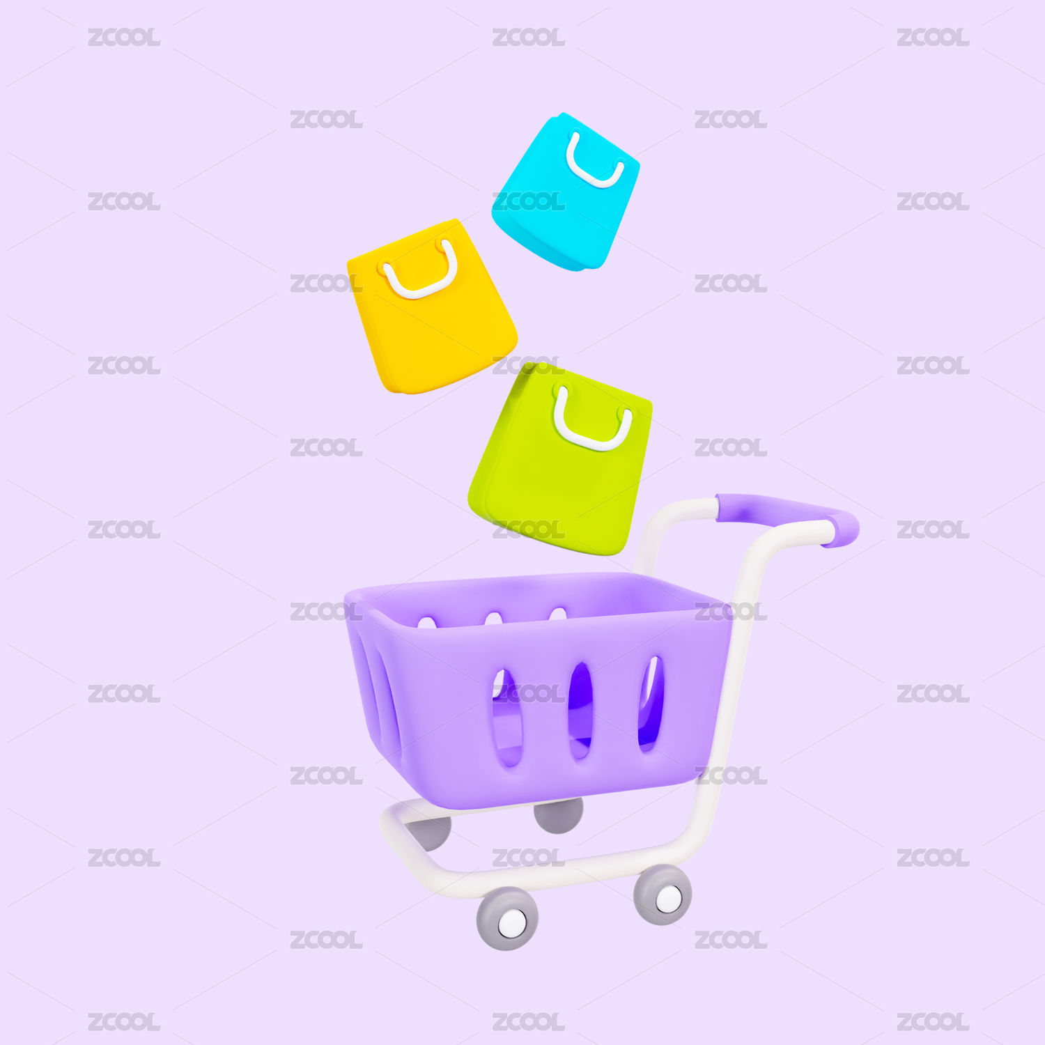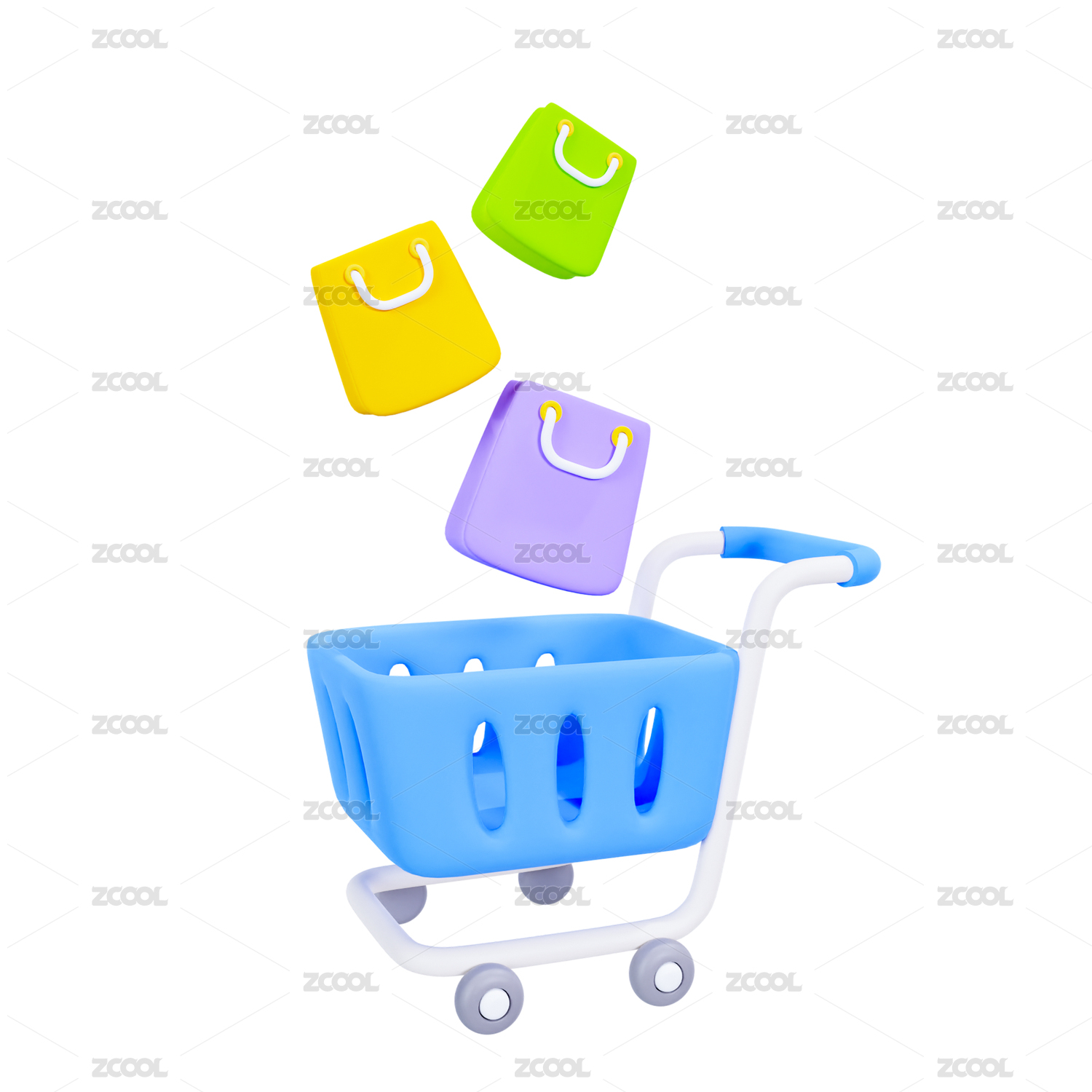 购物车,购物篮,购物,销售,3D,超市,购买,黄色,橙色,节日