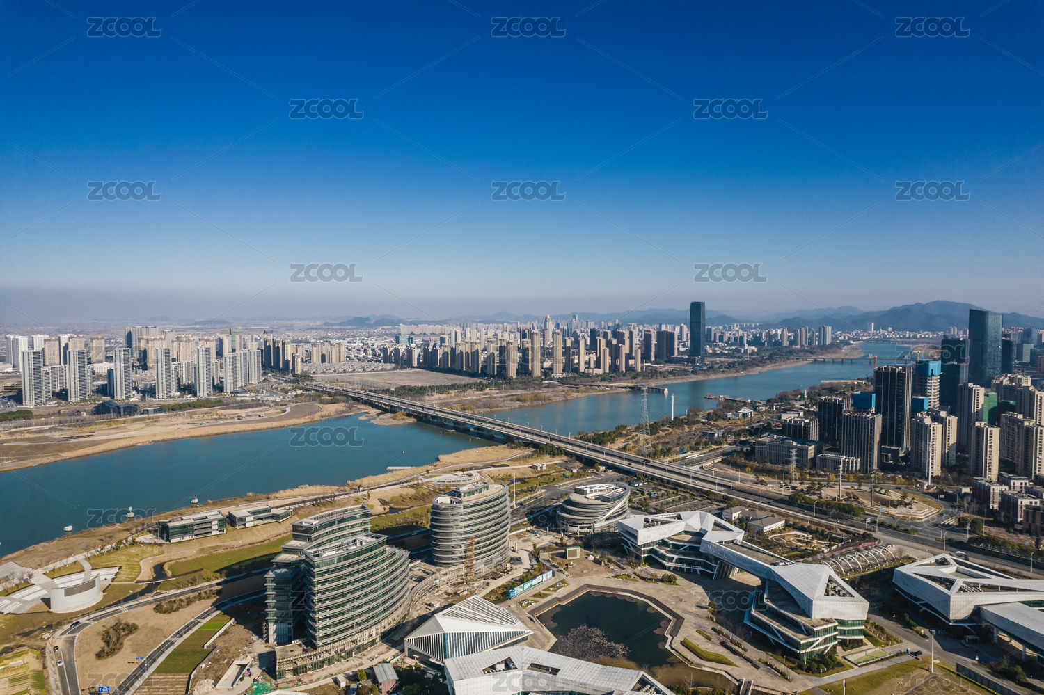 绍兴市上虞区曹娥江两岸城市风光航拍