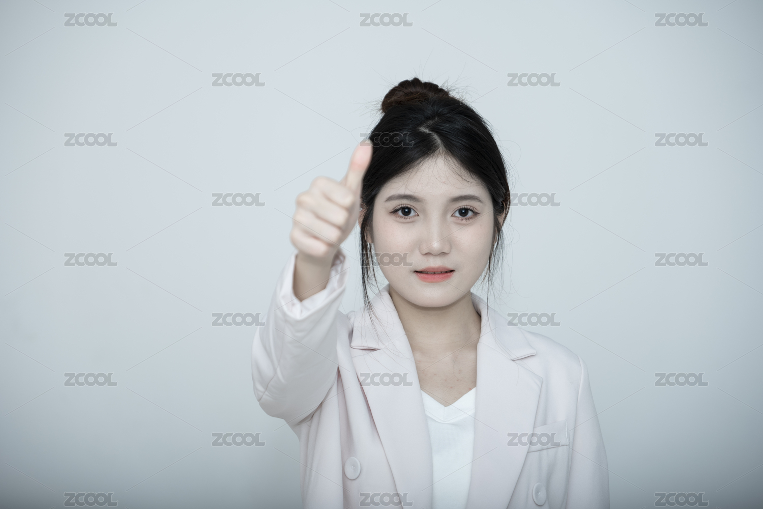 白色背景的亚洲年轻少女肖像人像