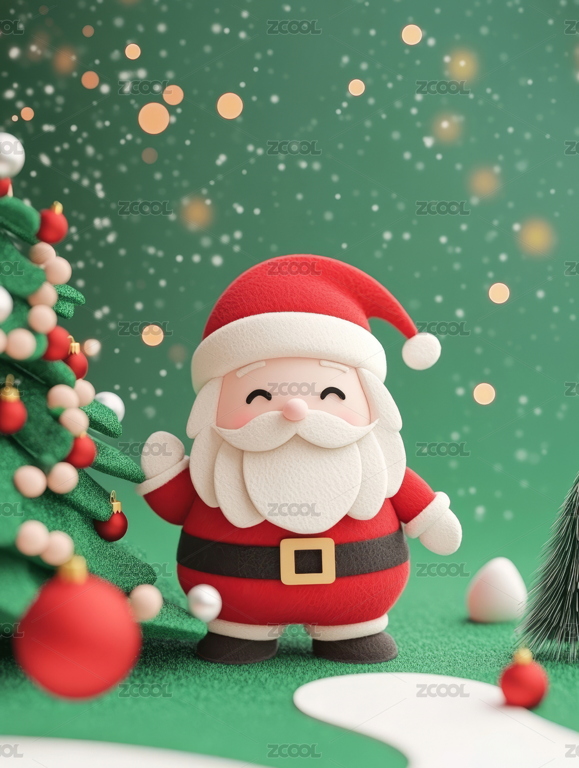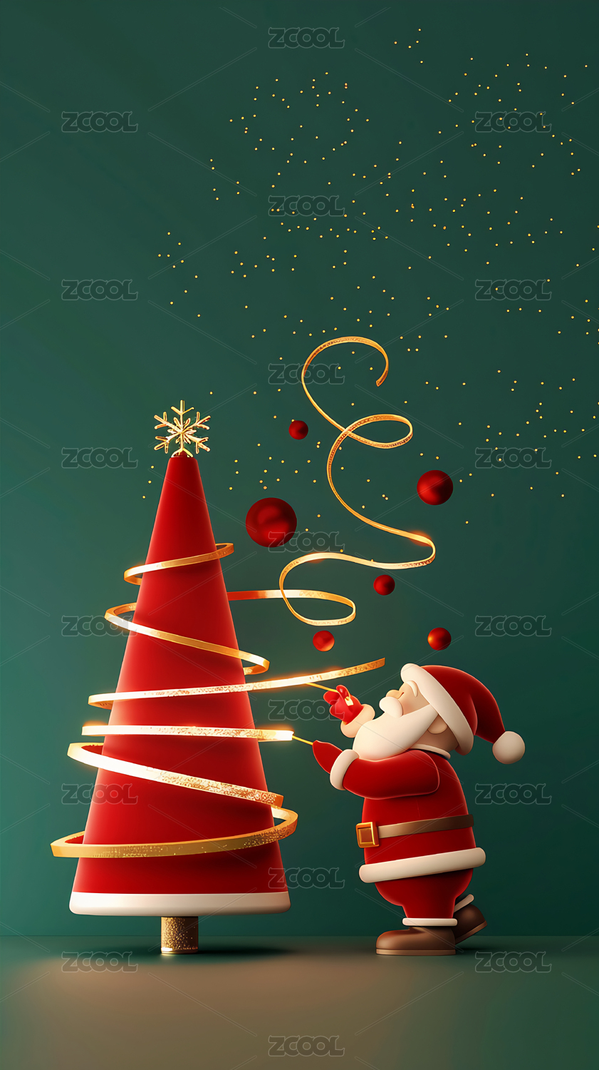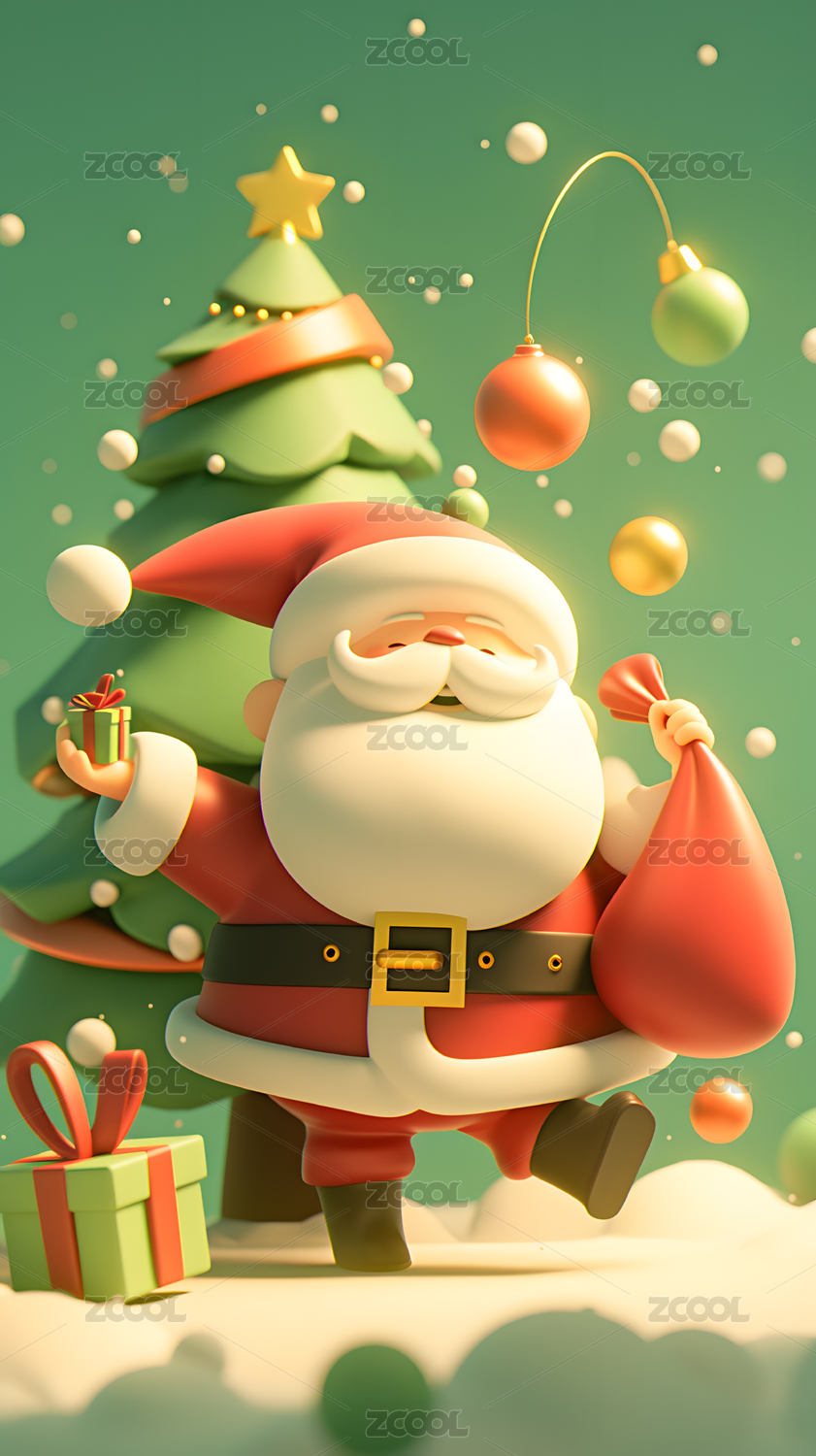 3D唯美的圣诞场景圣诞树和圣诞老人