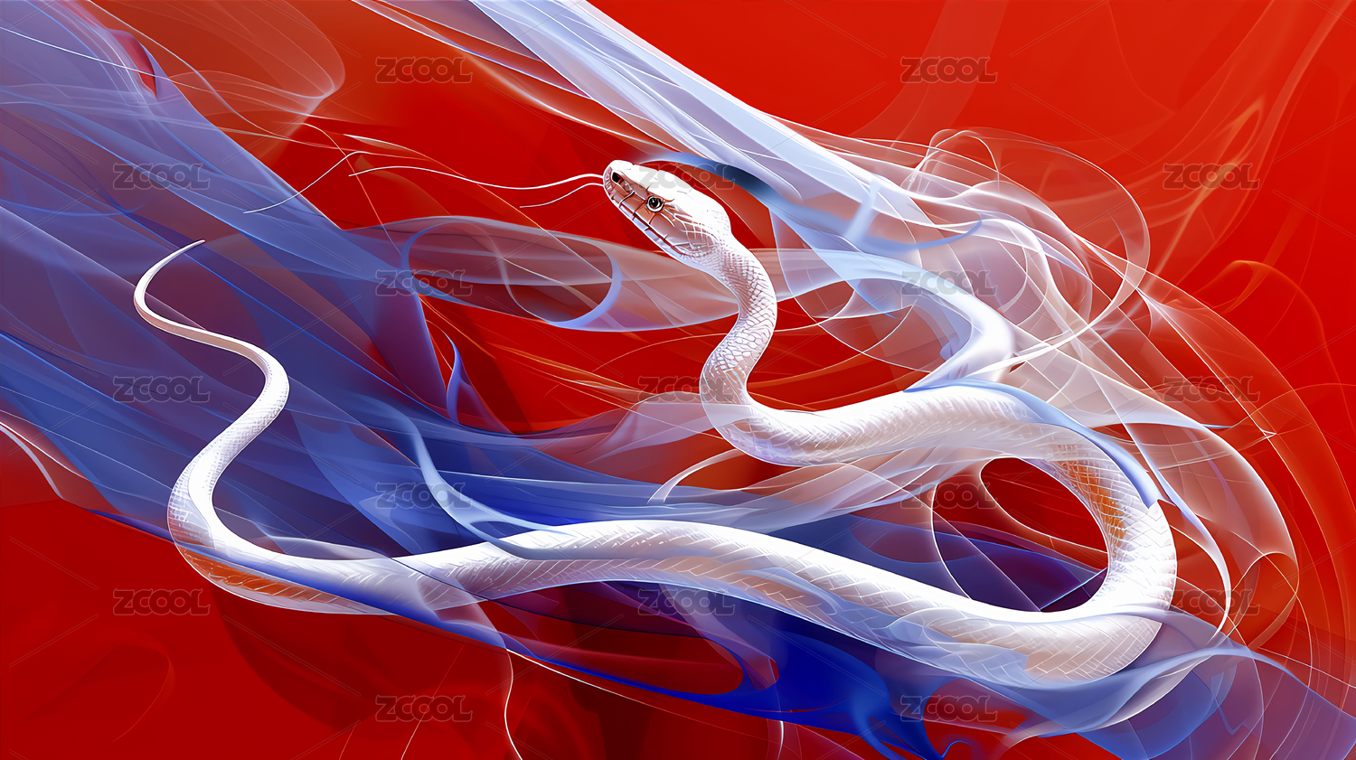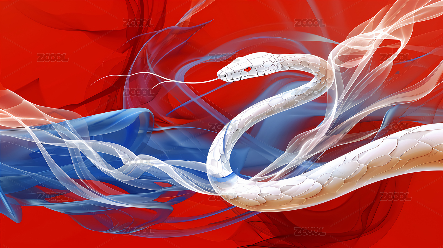 概念,白色,蛇,12生肖,红色,背景,蓝色,飘带,曲线,动感