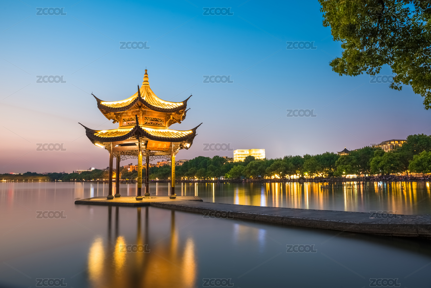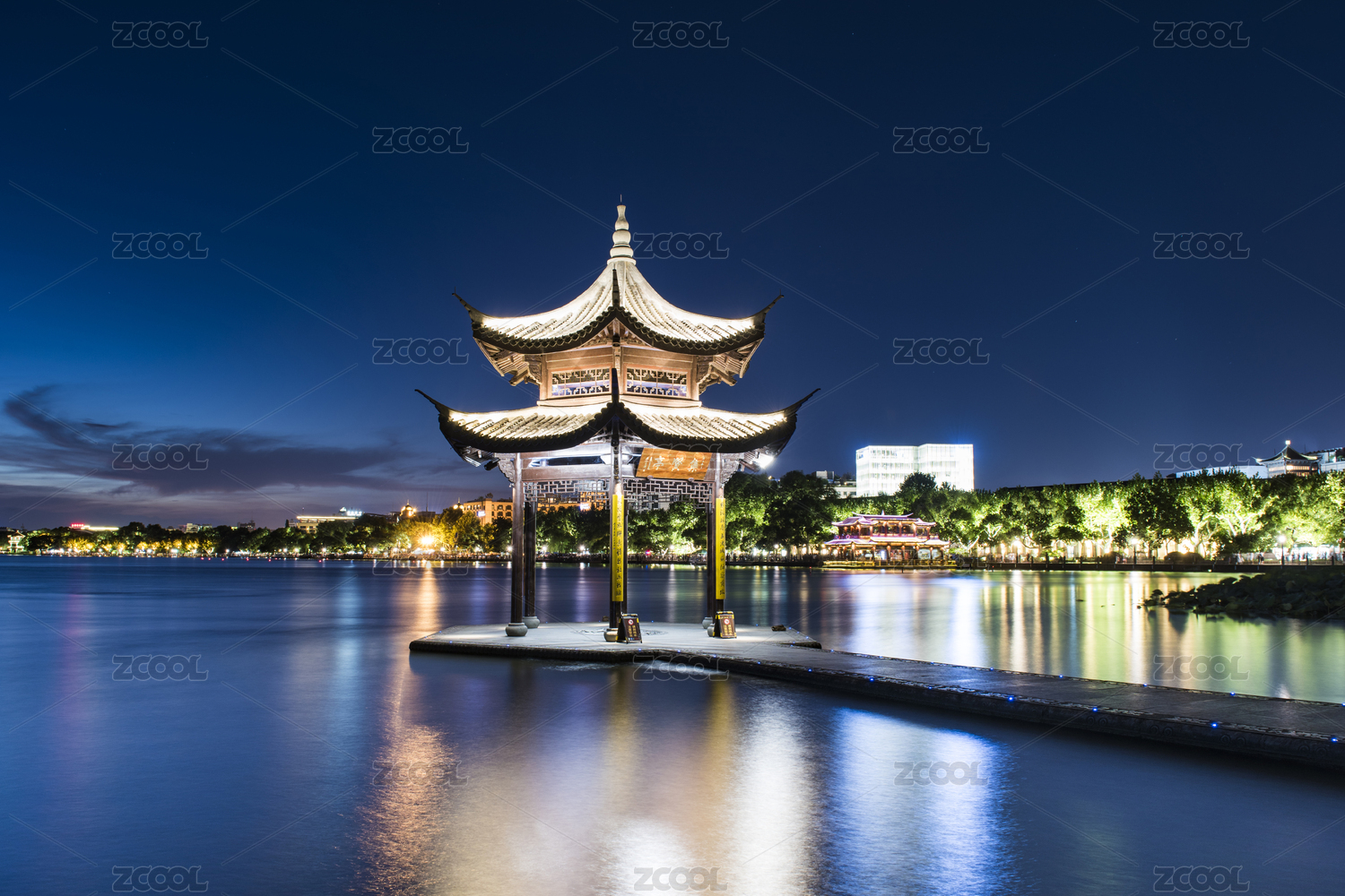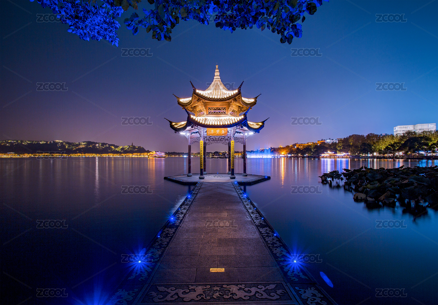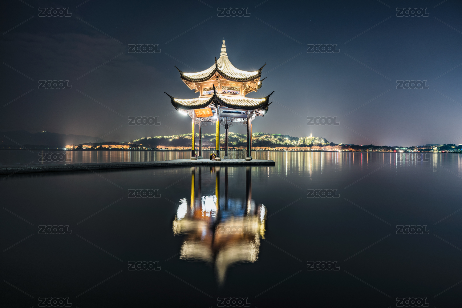 亚洲,东亚,中国,浙江省,杭州市,西湖,集贤亭,夜景,湖泊,古建筑