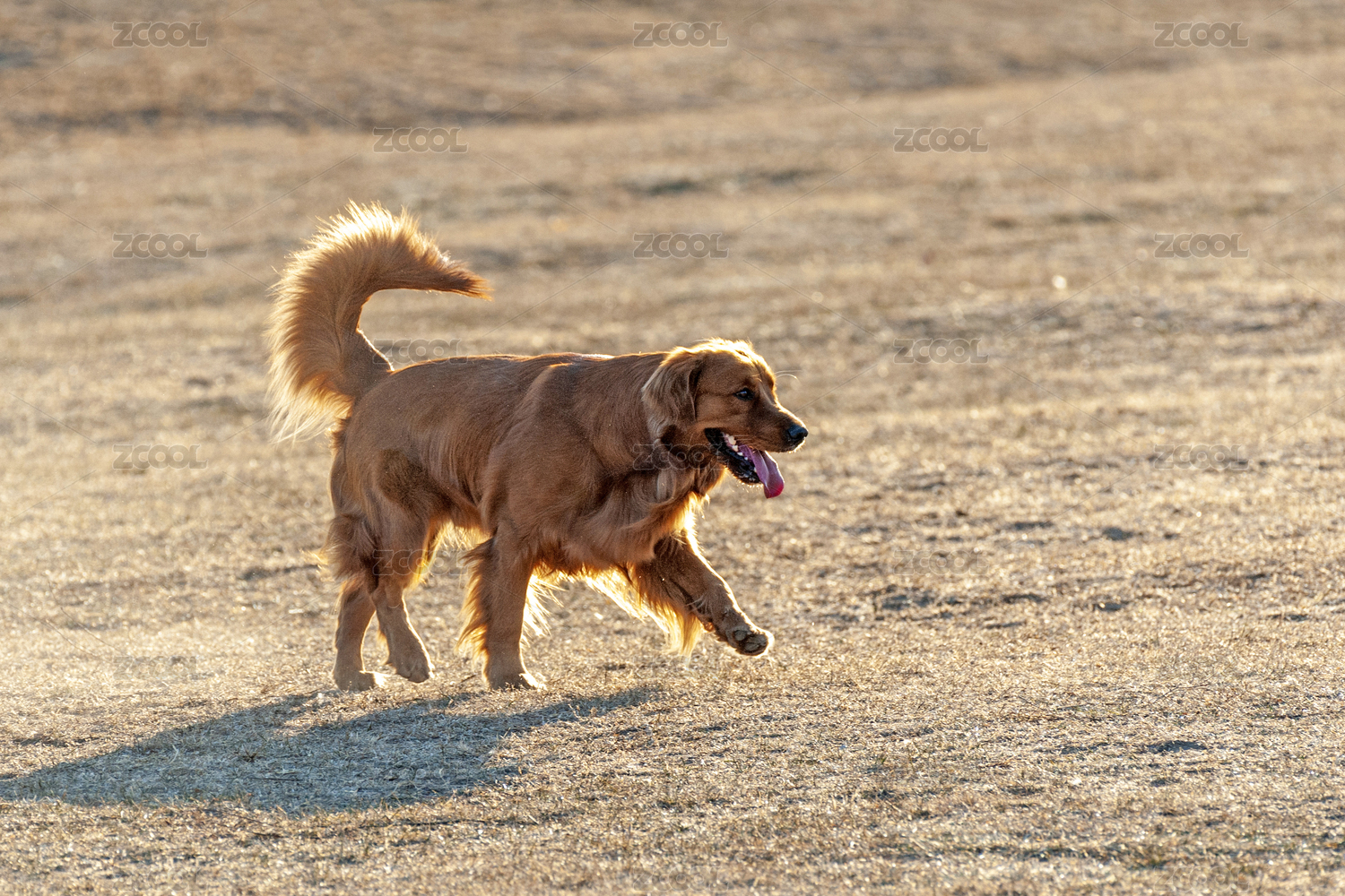 在深秋黄草丛中玩耍的母狗金毛