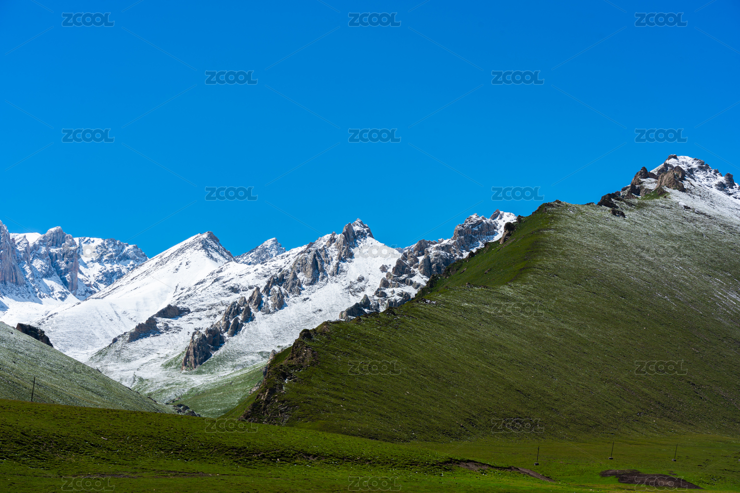 中国新疆那拉提雪莲谷雪山草地风光