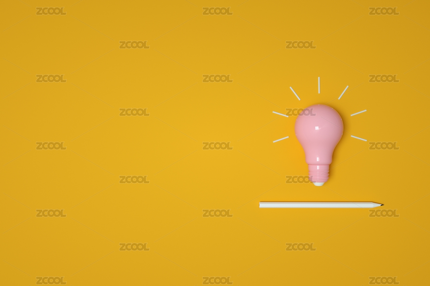 蓝色背景下蓝色铅笔指向黄色的灯泡微缩创意