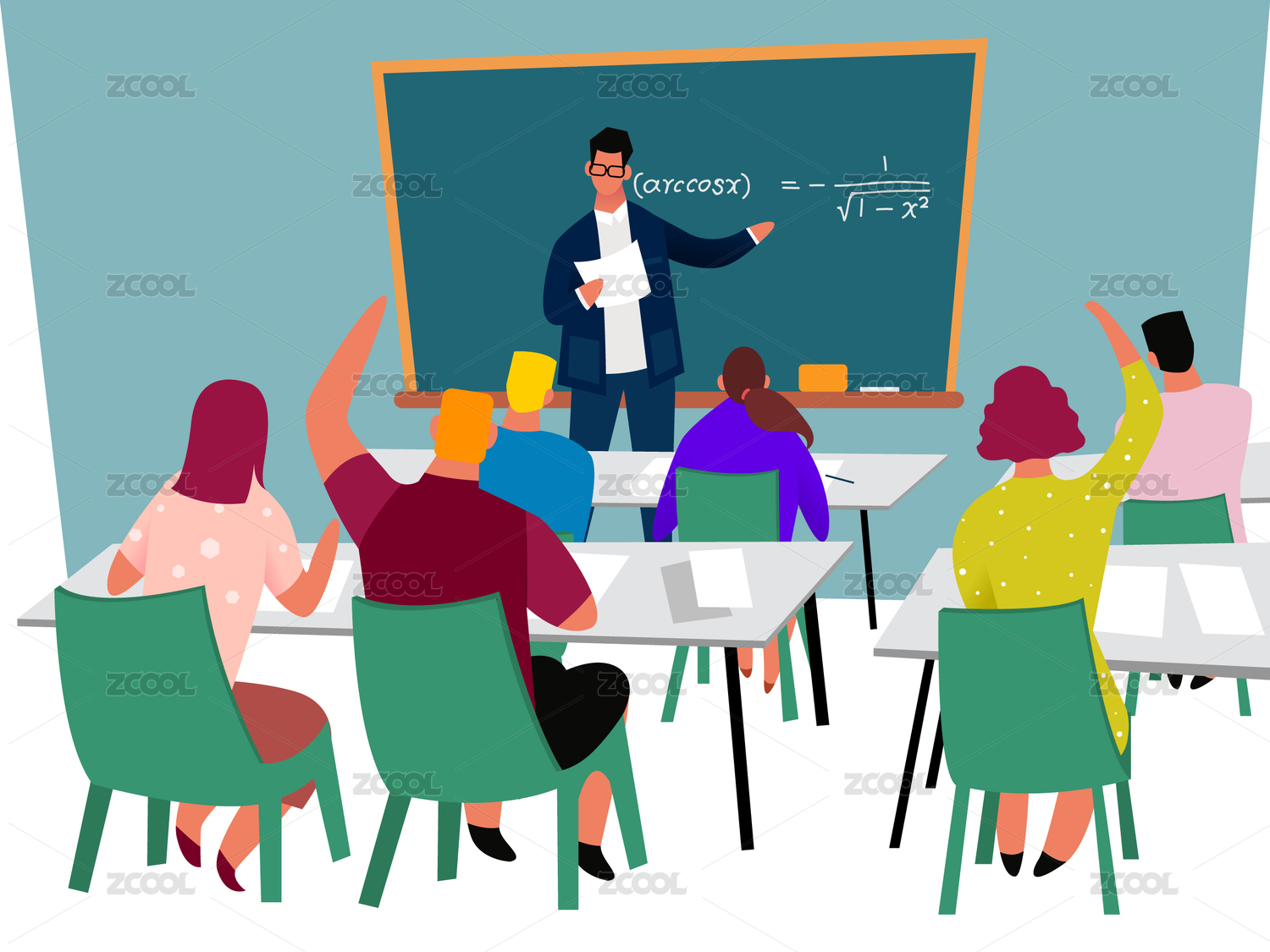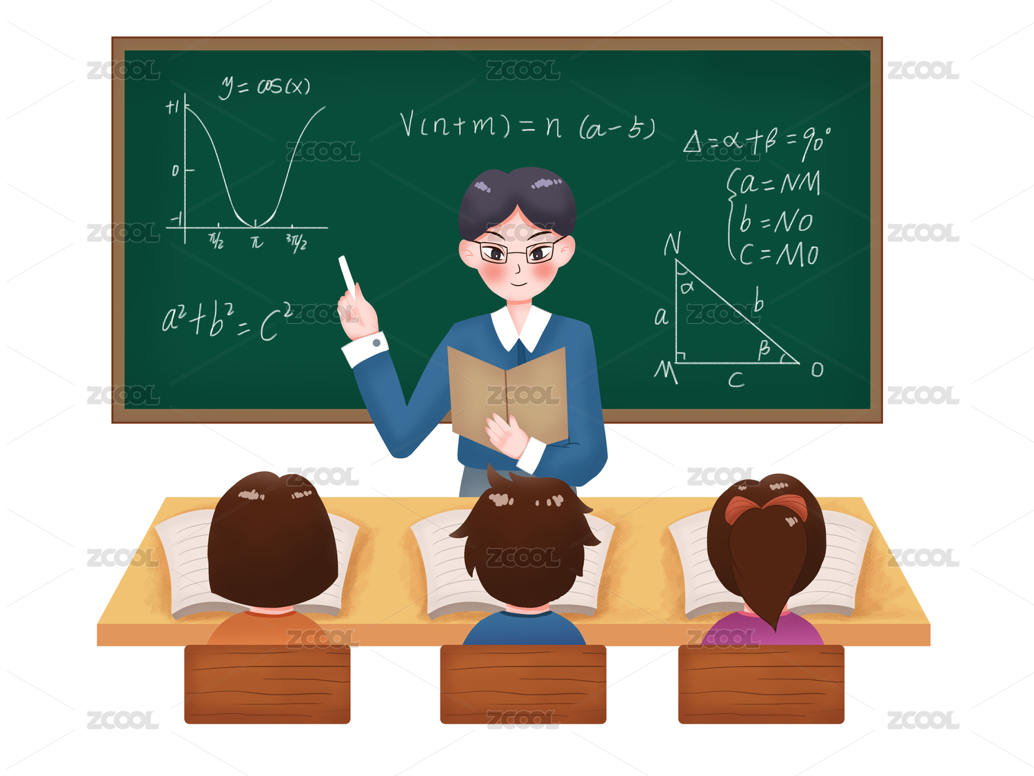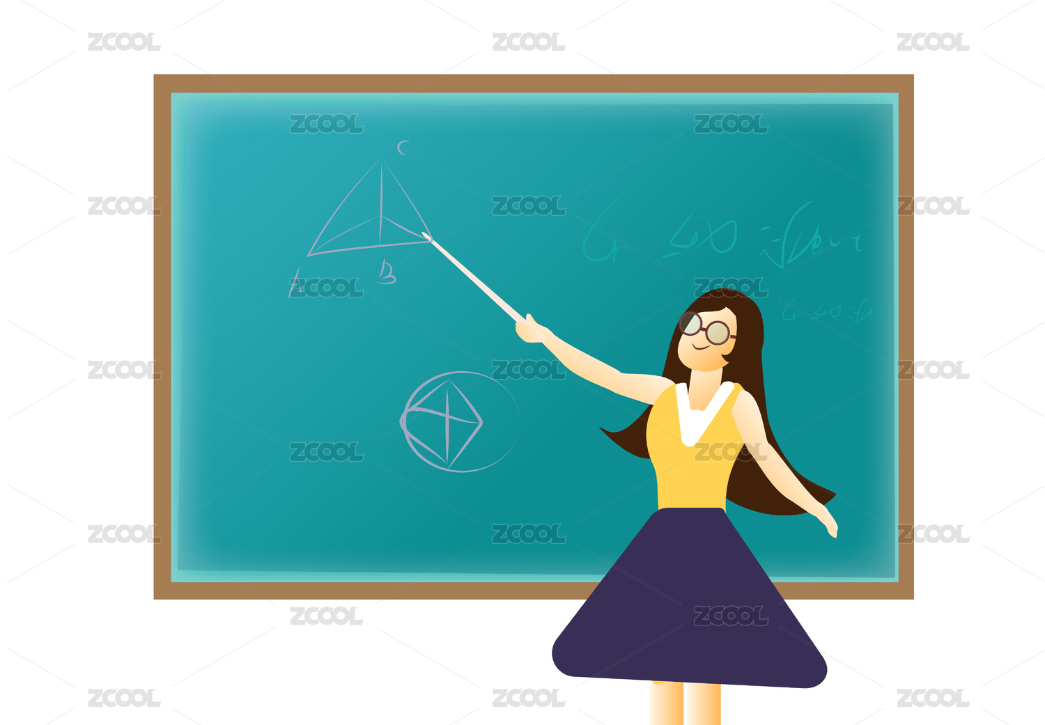 年轻的教师正在黑板上写数学题 课堂上讲课的老师插画