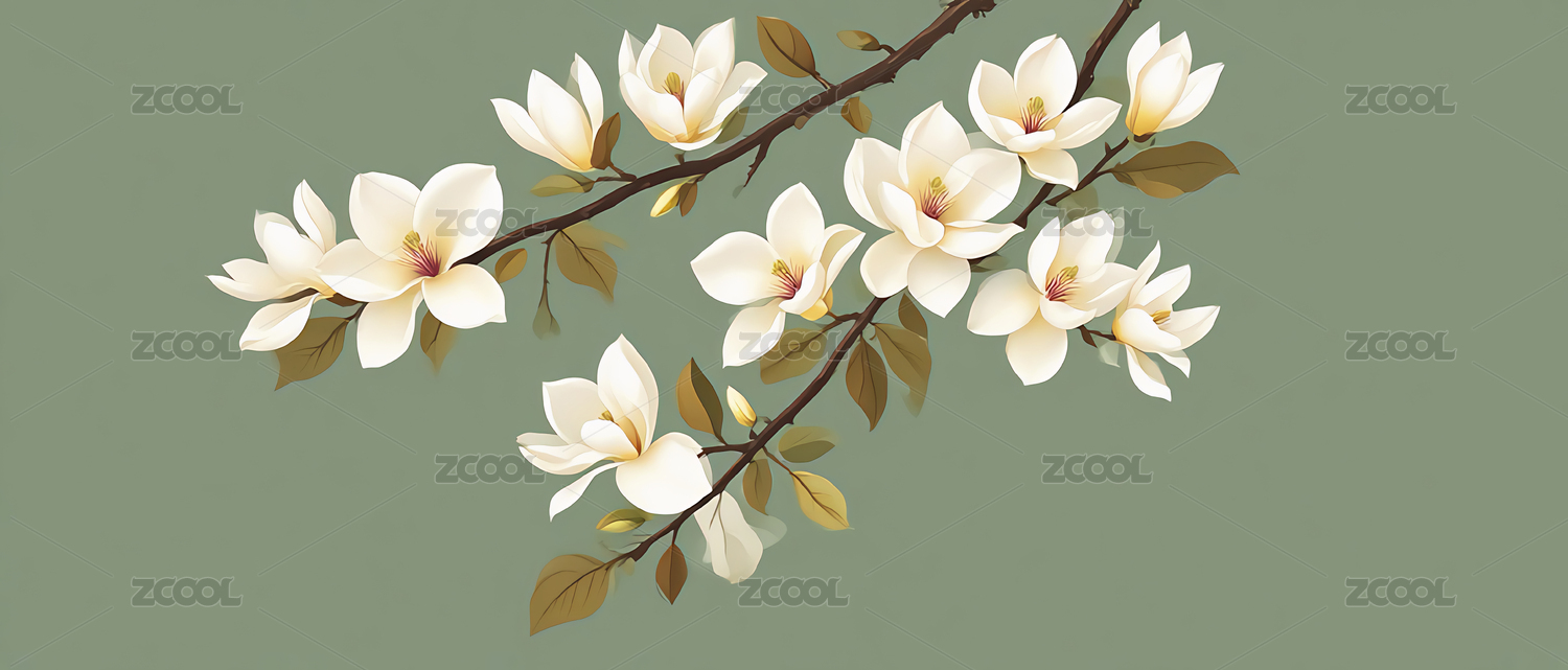 白玉兰花中式绘画场景