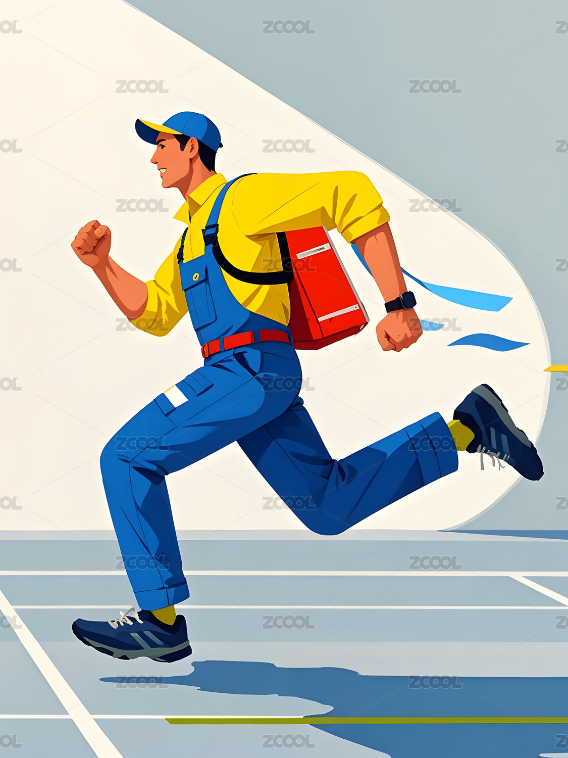 扁平风格美式时尚穿搭男生奔跑插画
