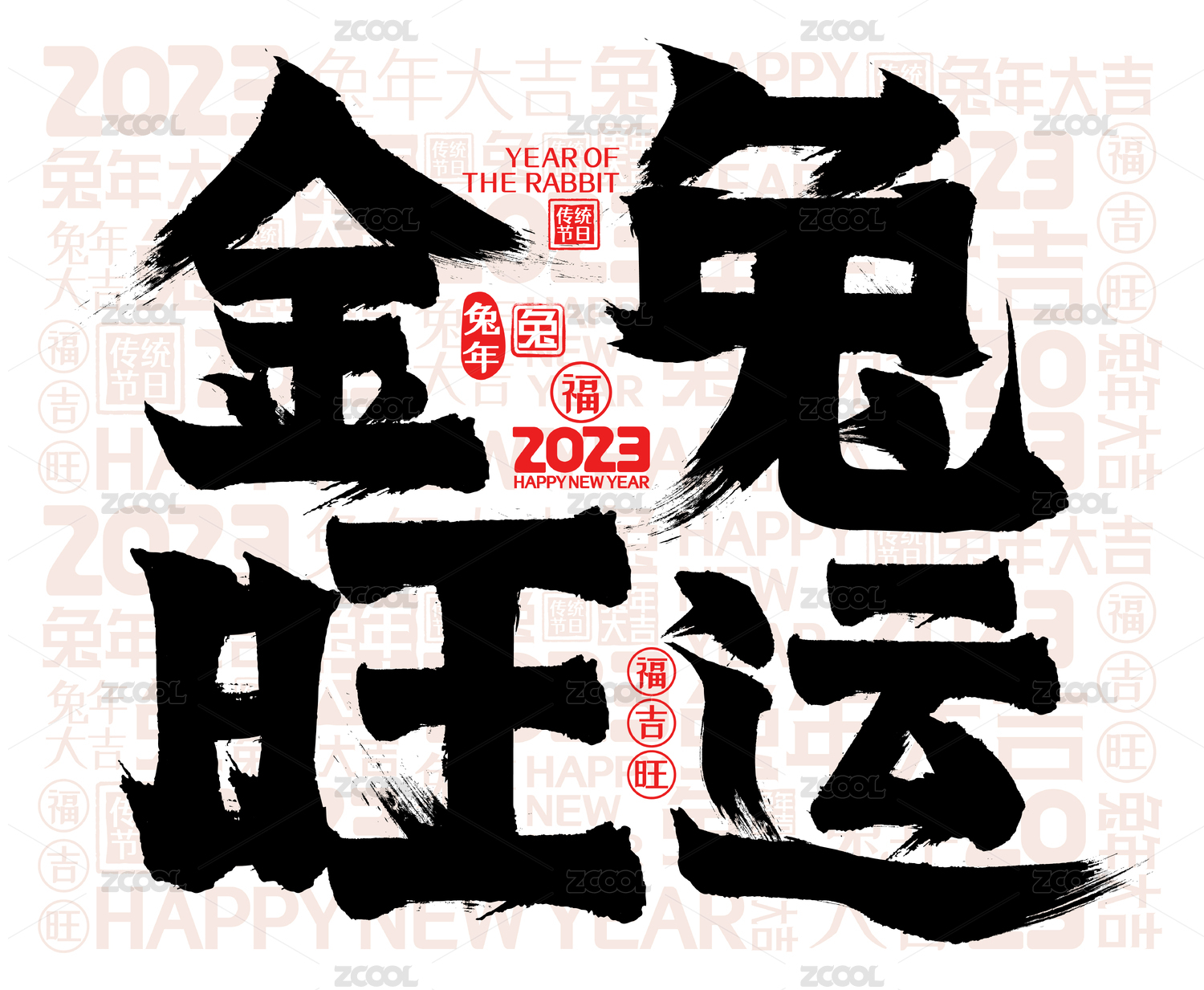 2023金兔旺运喜庆中国红兔年春节毛笔字