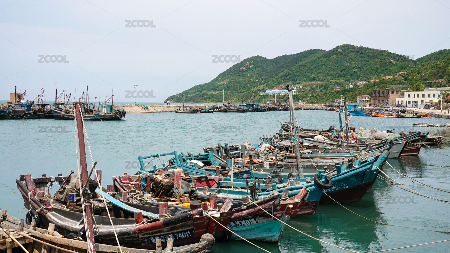 广东汕头南澳岛云澳镇避风港停靠的渔船风光