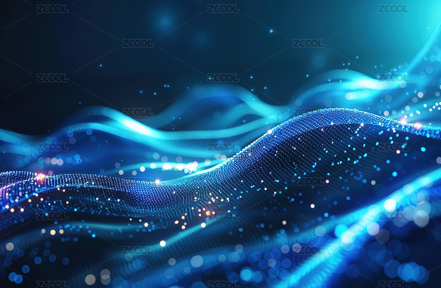 波浪粒子科技蓝色曲线商务科技感大数据背景