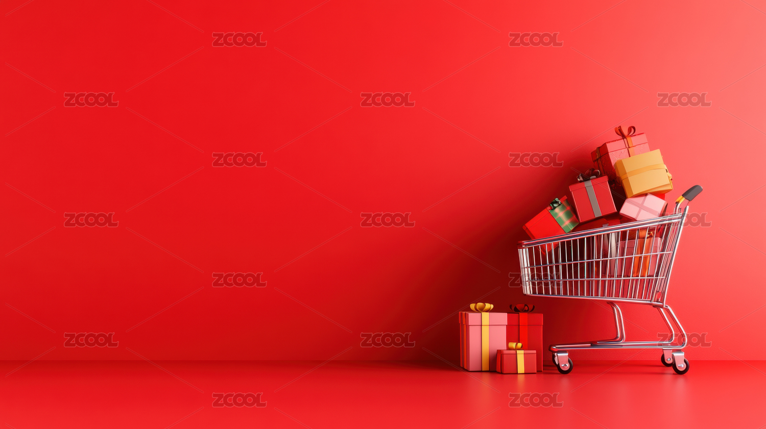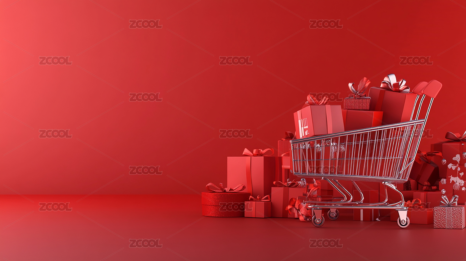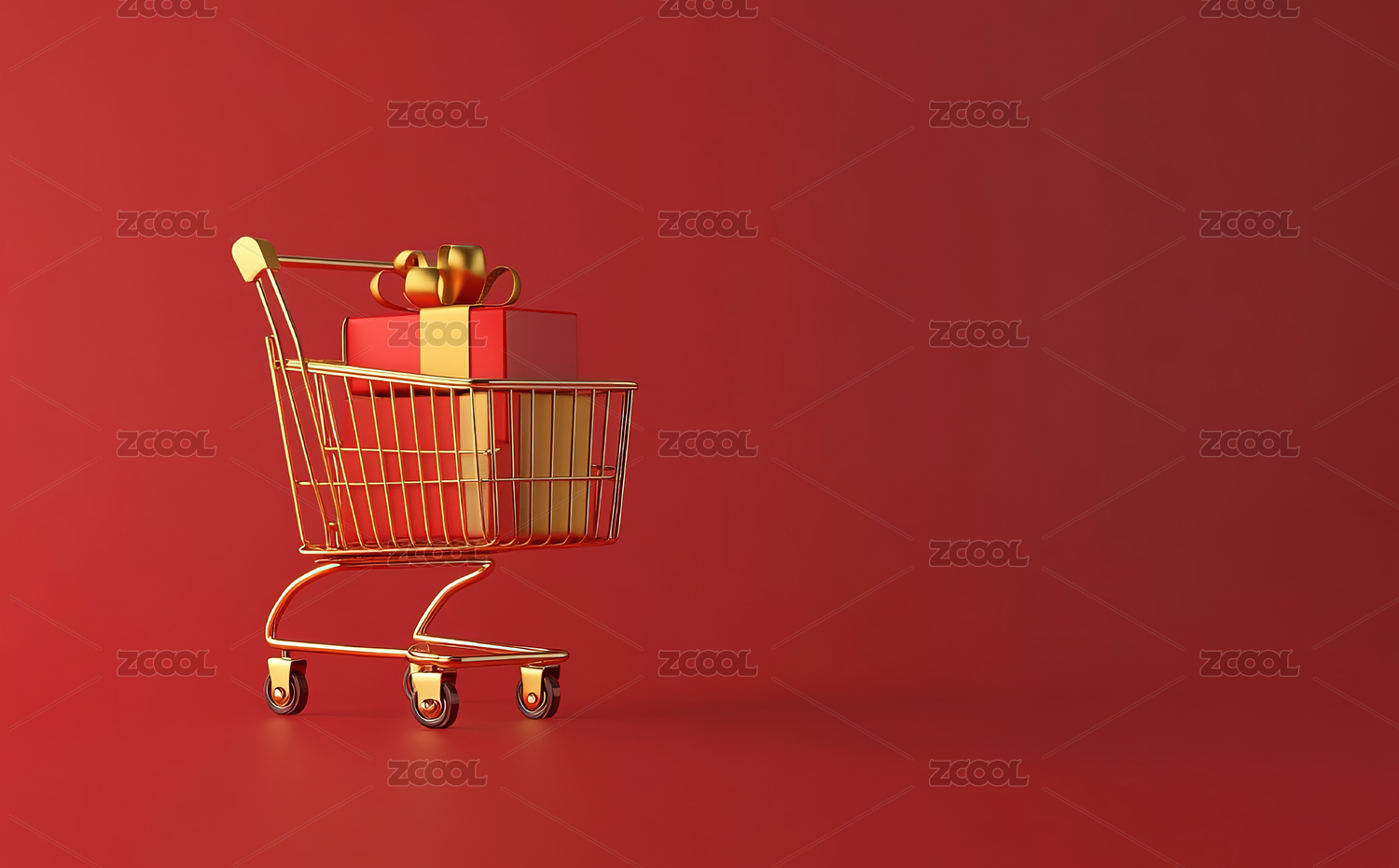 红色,电商,喜庆,年货节,购物车,新年,礼物,年货,购物,礼盒