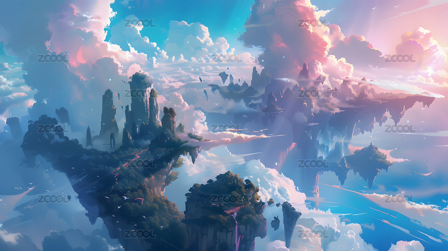 空中岛屿天空之城彩云梦幻唯美创意设计艺术