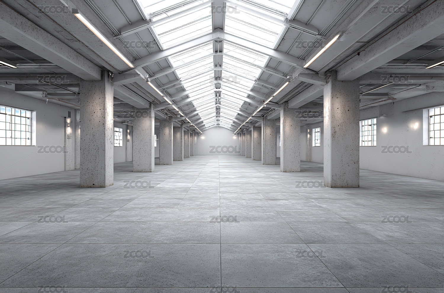 宽敞明亮的工业仓库内部