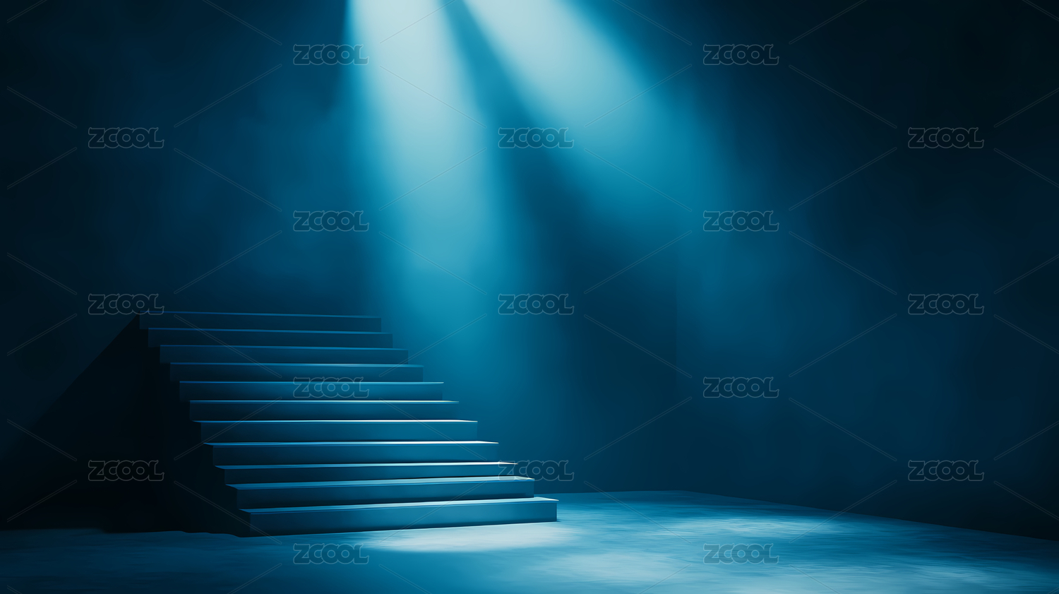 蓝色调楼梯光束照射