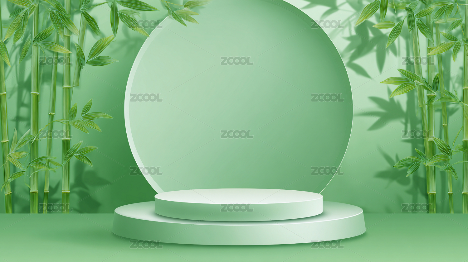 绿竹圆形电商展示台背景图