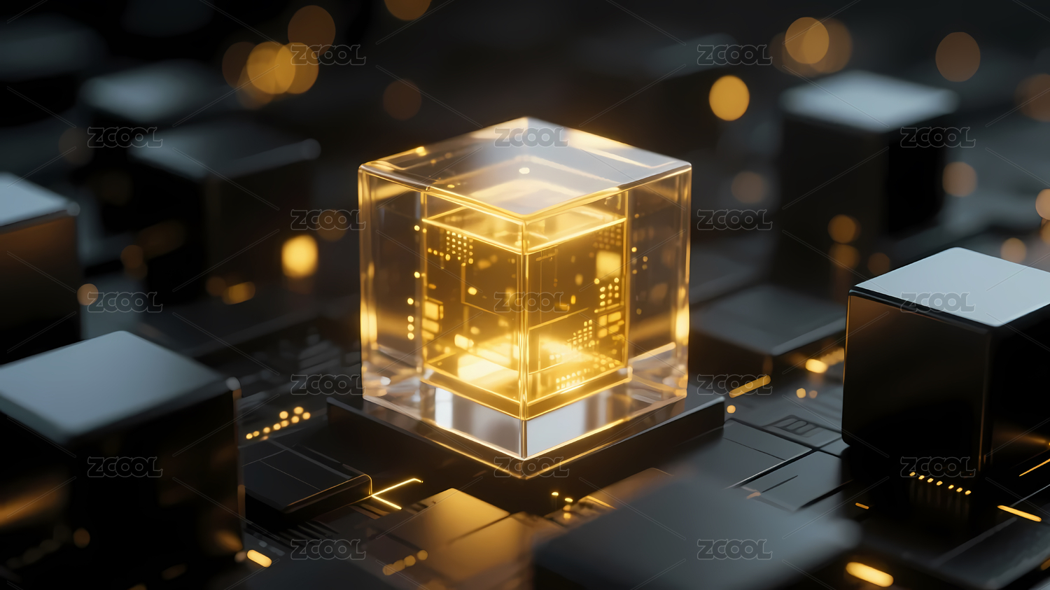 科技感十足的发光立方体与线路交织