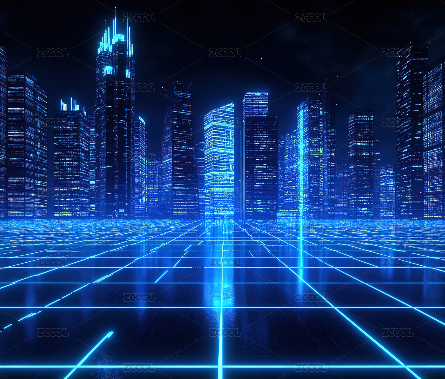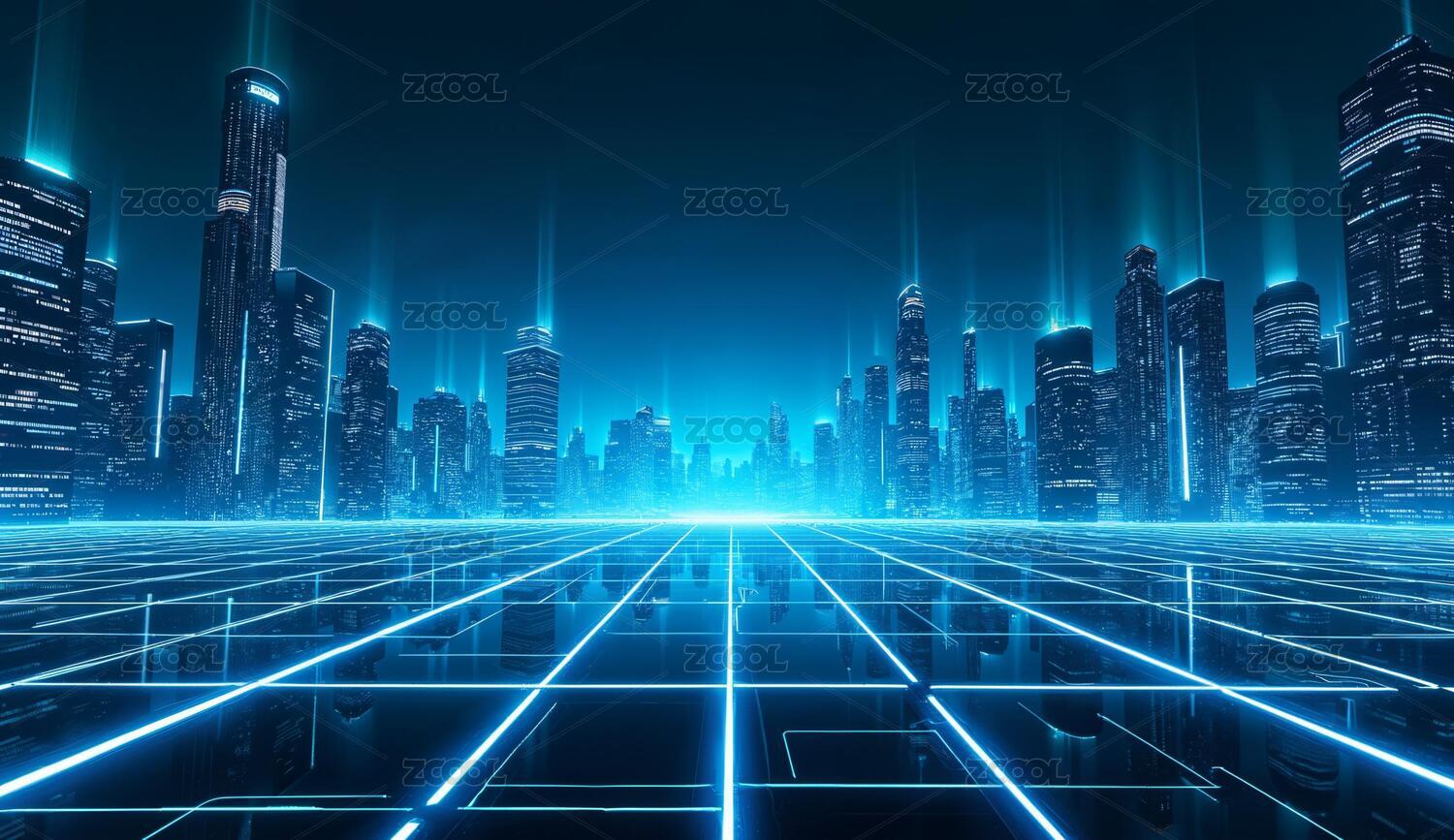 科技互联网概念的摩天大楼繁华夜景