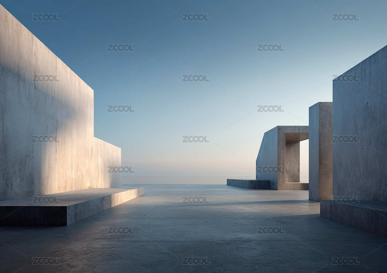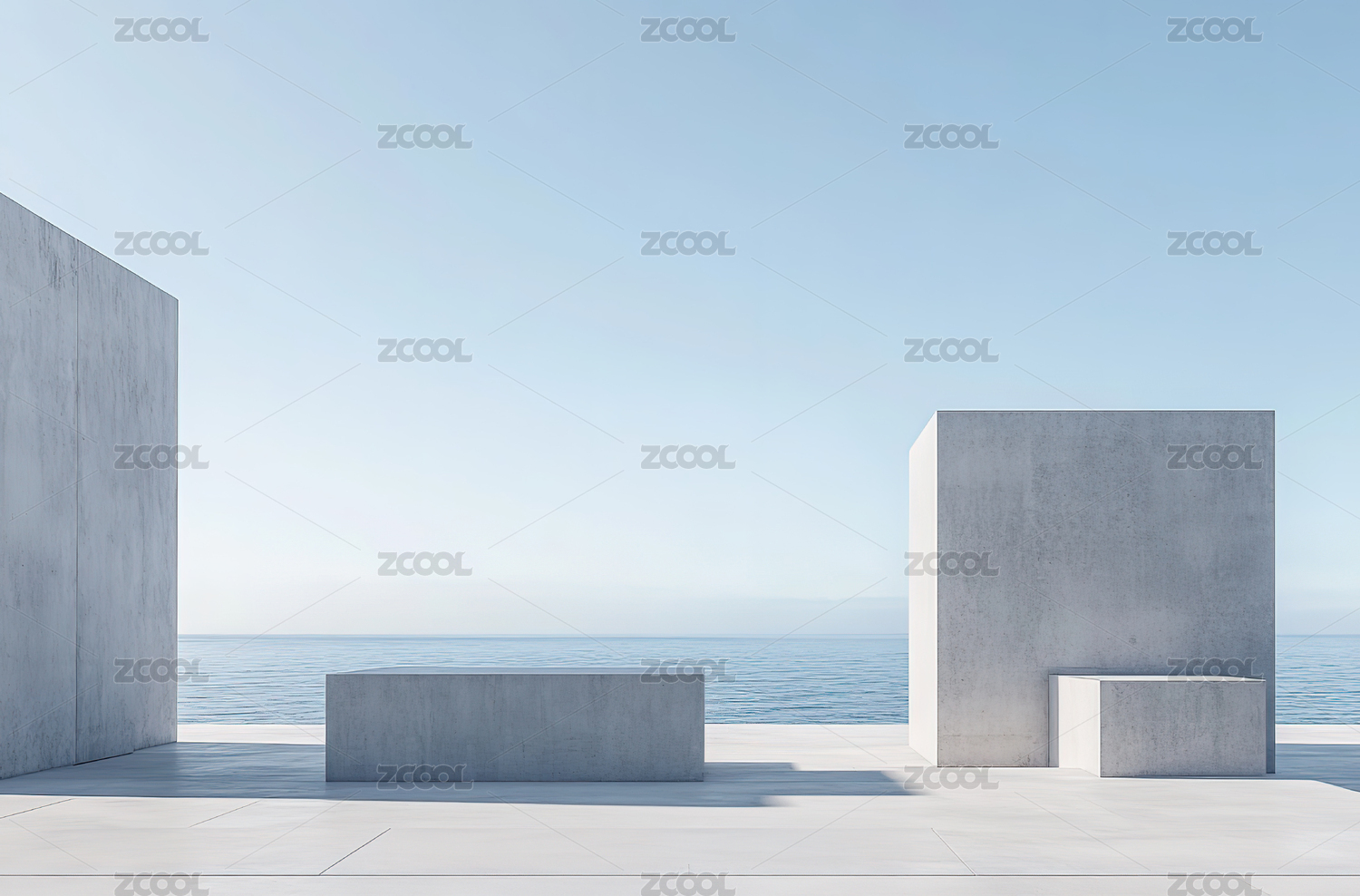 混凝土结构与海景的现代建筑空间