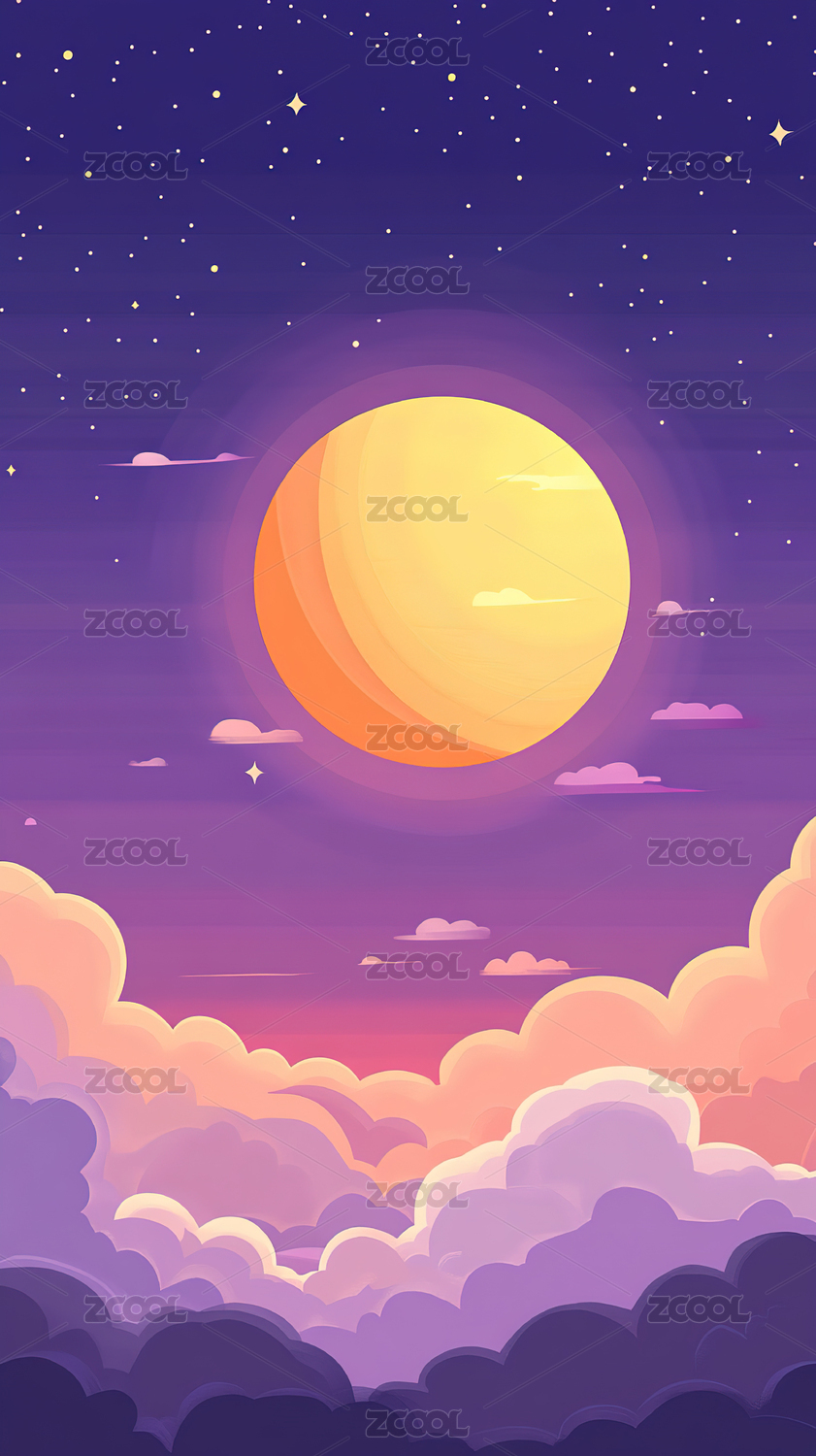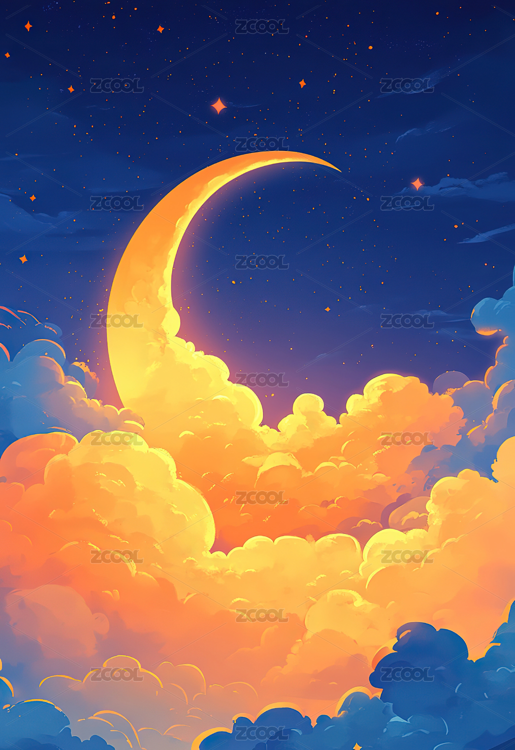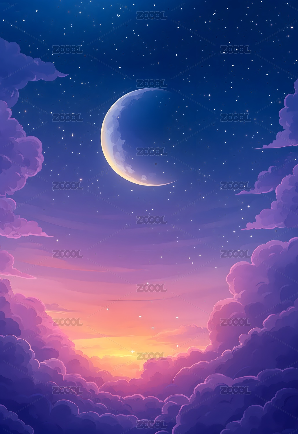 无人,插画,AI数字艺术,自然,壁纸,背景,手绘,云,海洋生命,月亮