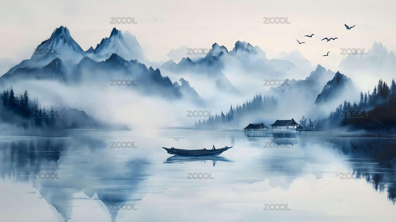 高山,自然,宁静,户外,中国画,湖,自然美,反射,中国文化,云