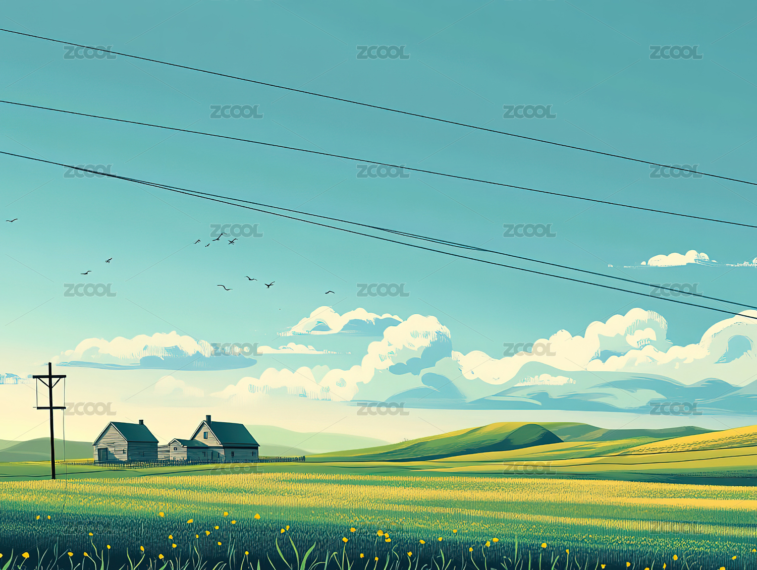 乡村田园风景插画