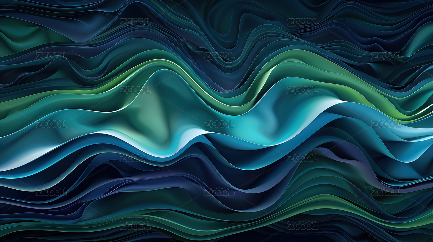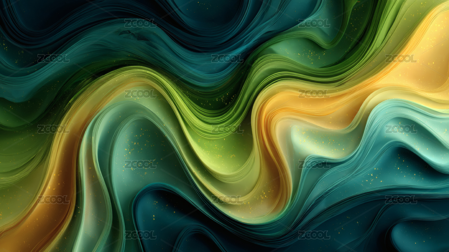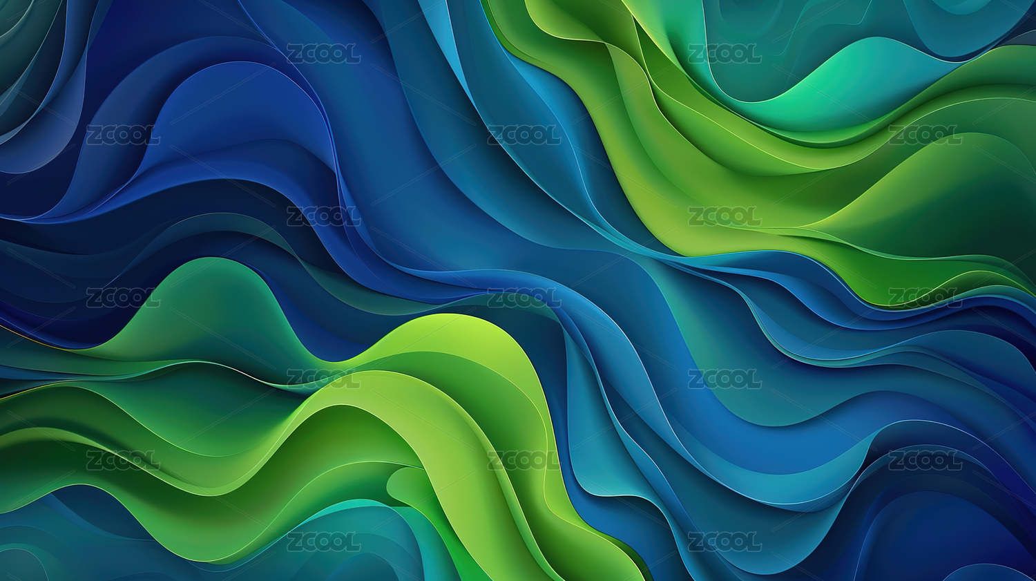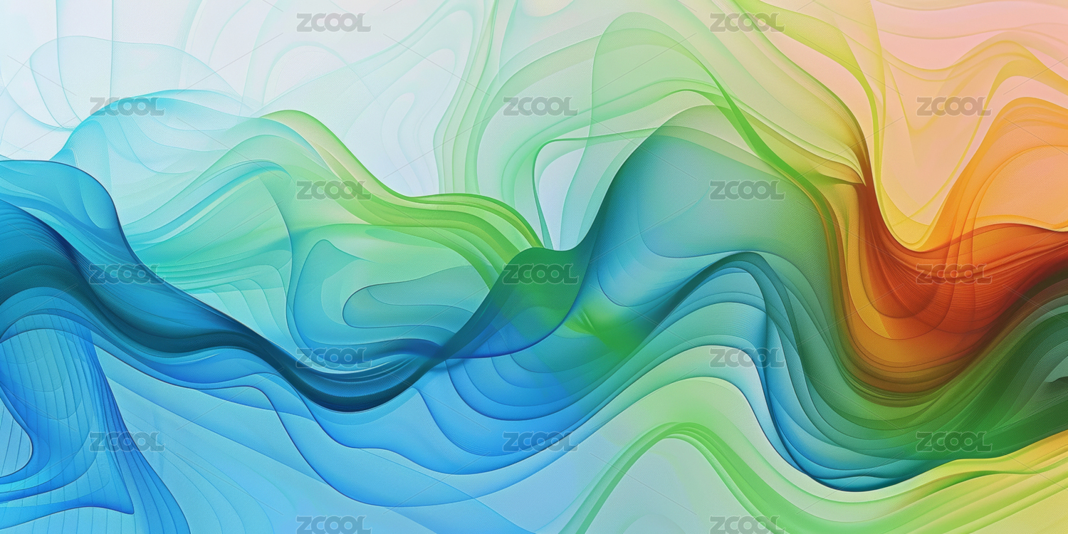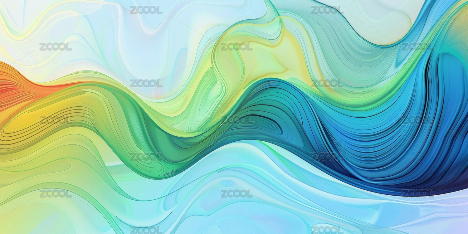 蓝绿黄色渐变的波浪线条,动感曲线背景