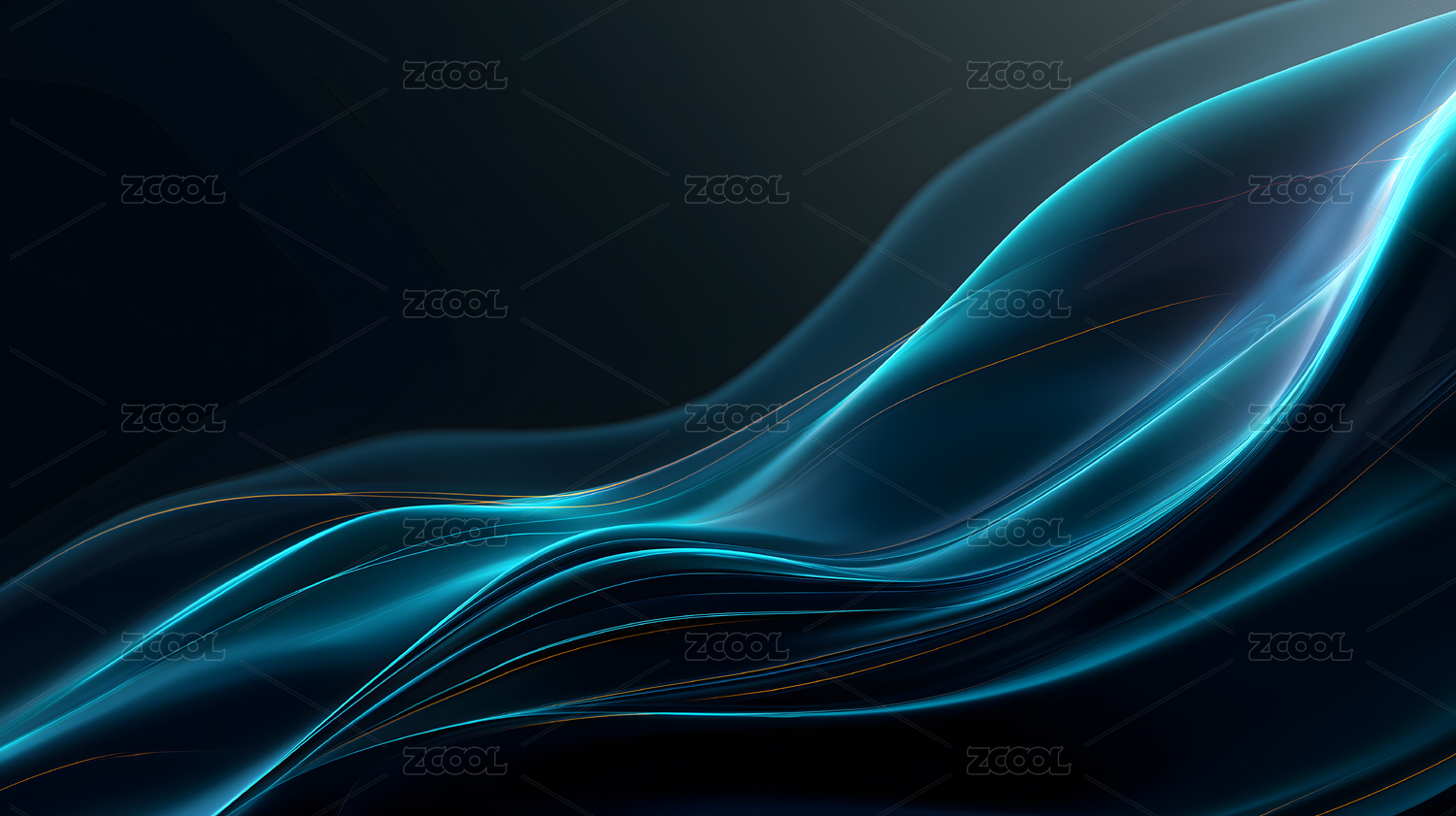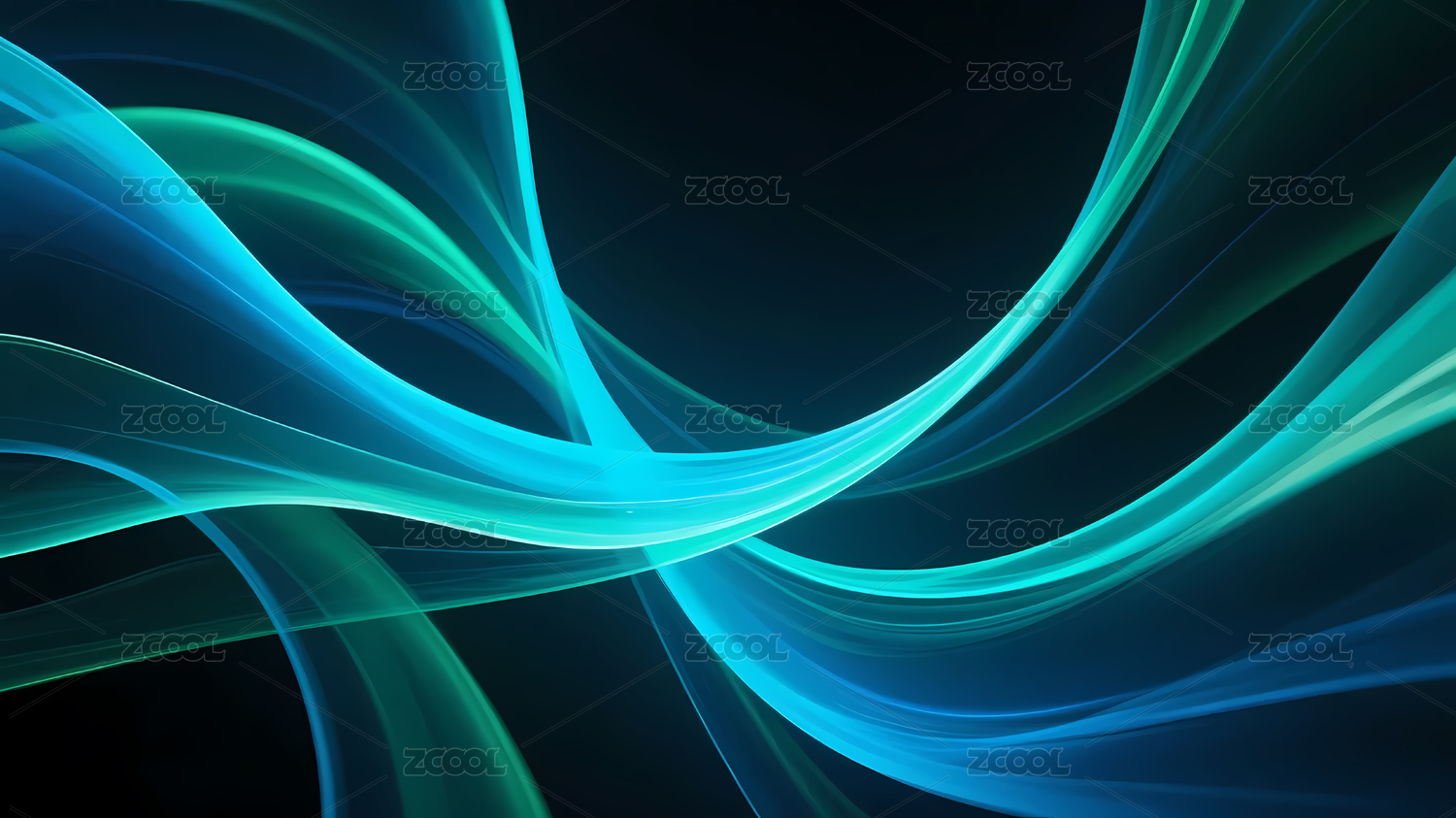 蓝绿流动线条与深色背景